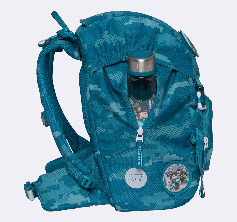 Vendbar frontlomme. Barn har forskjellige ønsker og dette endrer seg i løpet av de første skoleårene. Vi ønsker å møte dette behovet. Derfor kommer nå alle Classic-design med vendbar frontlomme (unntak: Tech Rex) som gjør at sekken kan skifte utseende i løpet av sekunder. Sekken blir da også mer nøytral dersom du ønsker det.