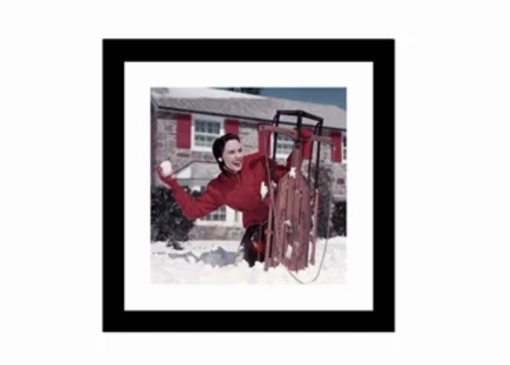 Bilde I ramme med glass "Kvinne kaster snøball"