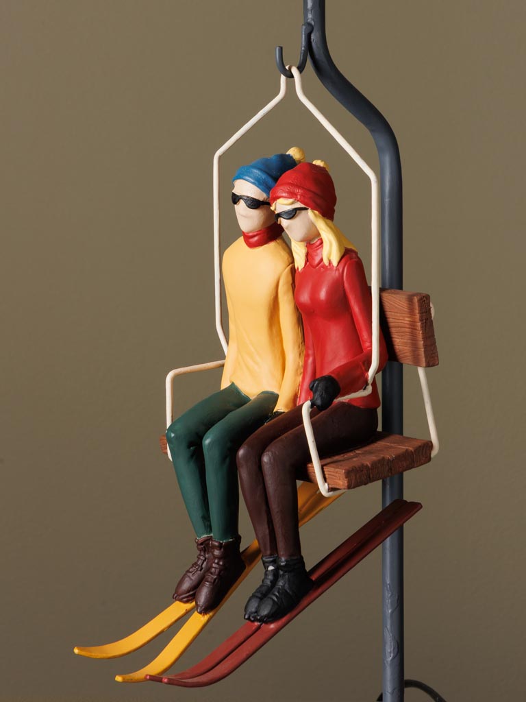 Dekorativ bordlampe med 2 personer i en skiheis.