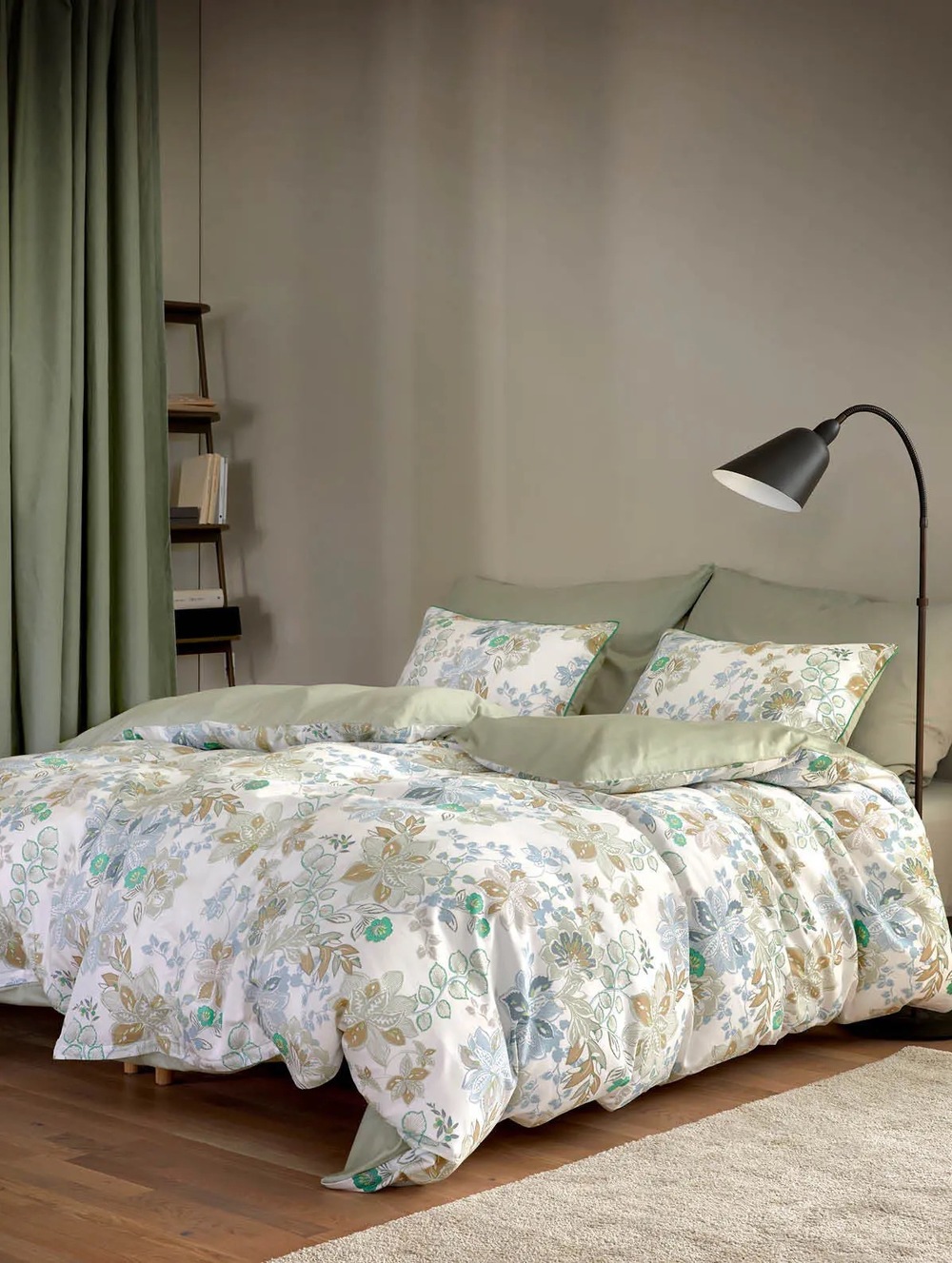 Cassandra sengesett i sateng er laget av ren bomull som er kjent for sine ekstra tynne og langfibrede tråder. Den fine satengvevingen gir en fin...Cassandra sengesett i sateng er laget av ren bomull som er kjent for sine ekstra tynne og langfibrede tråder. Den fine satengvevingen gir en fin og særegen glans - og er myk og behagelig. Den elegante pipingen i putetrekket gir en sofistikert og nydelig finish. Sengesettet er behandlet med Easy Care gjør at det krøller mindre og holder seg fint lengre. Glidelås i bunnen gjør at sengesettet er enkelt å ta av og på. Match med ekstra puter og laken i samme fargepalett for et komplett uttrykk.