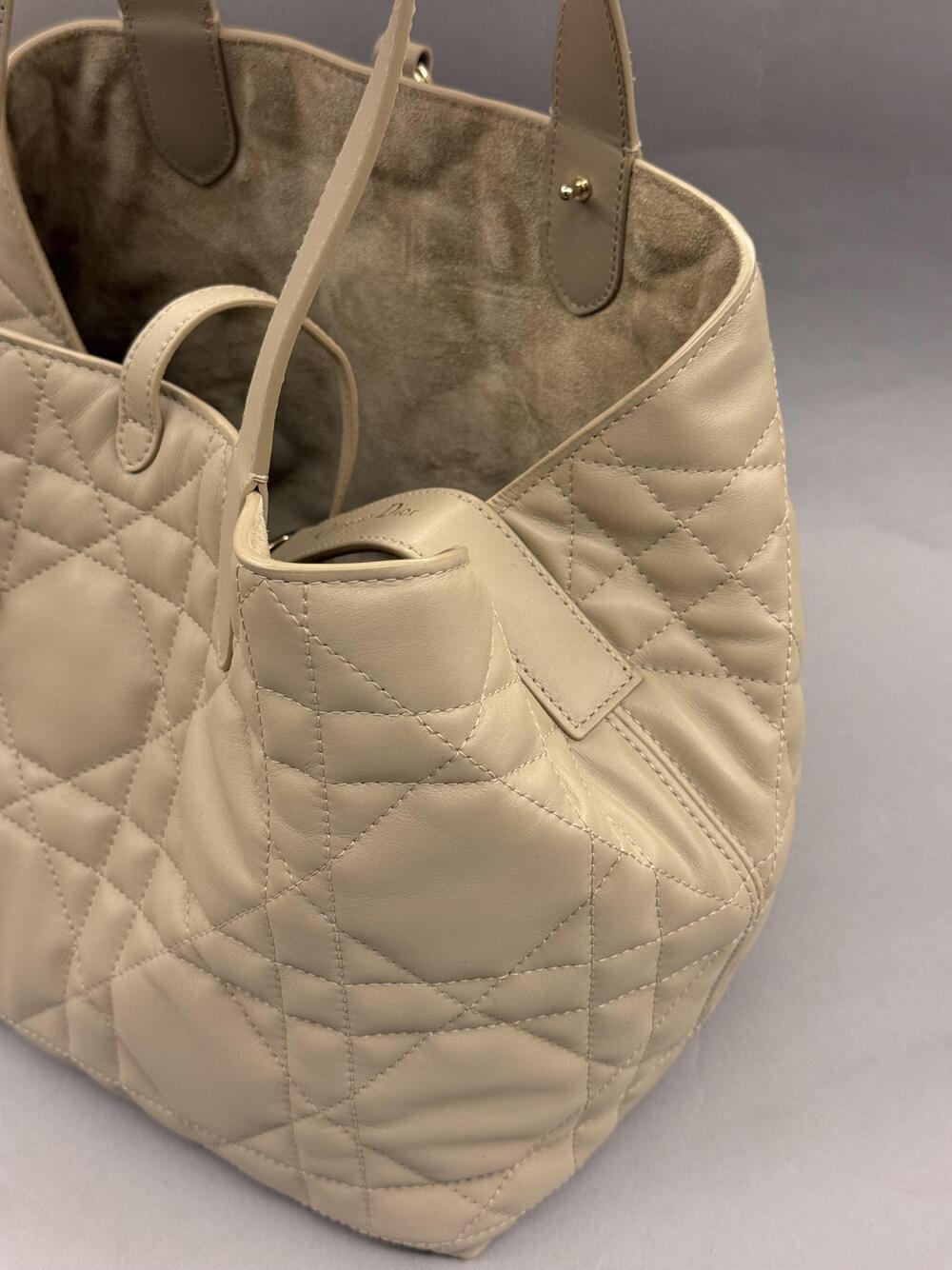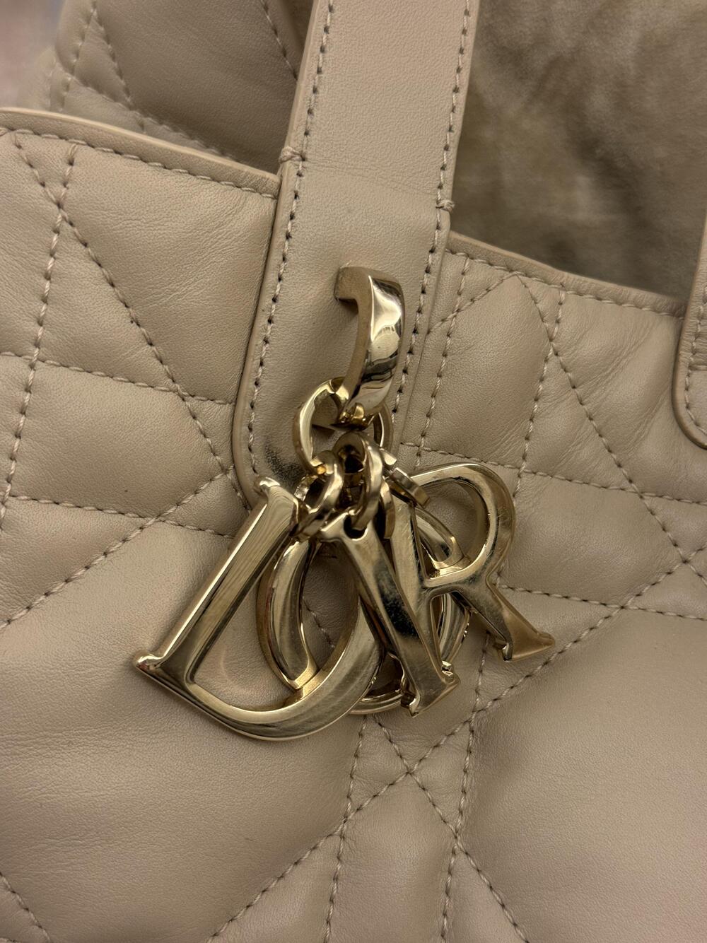 Dior Toujours veske i beige skinn med tilhørende clutch. Et stort rom inni. Nyprisen er 44000 kr!