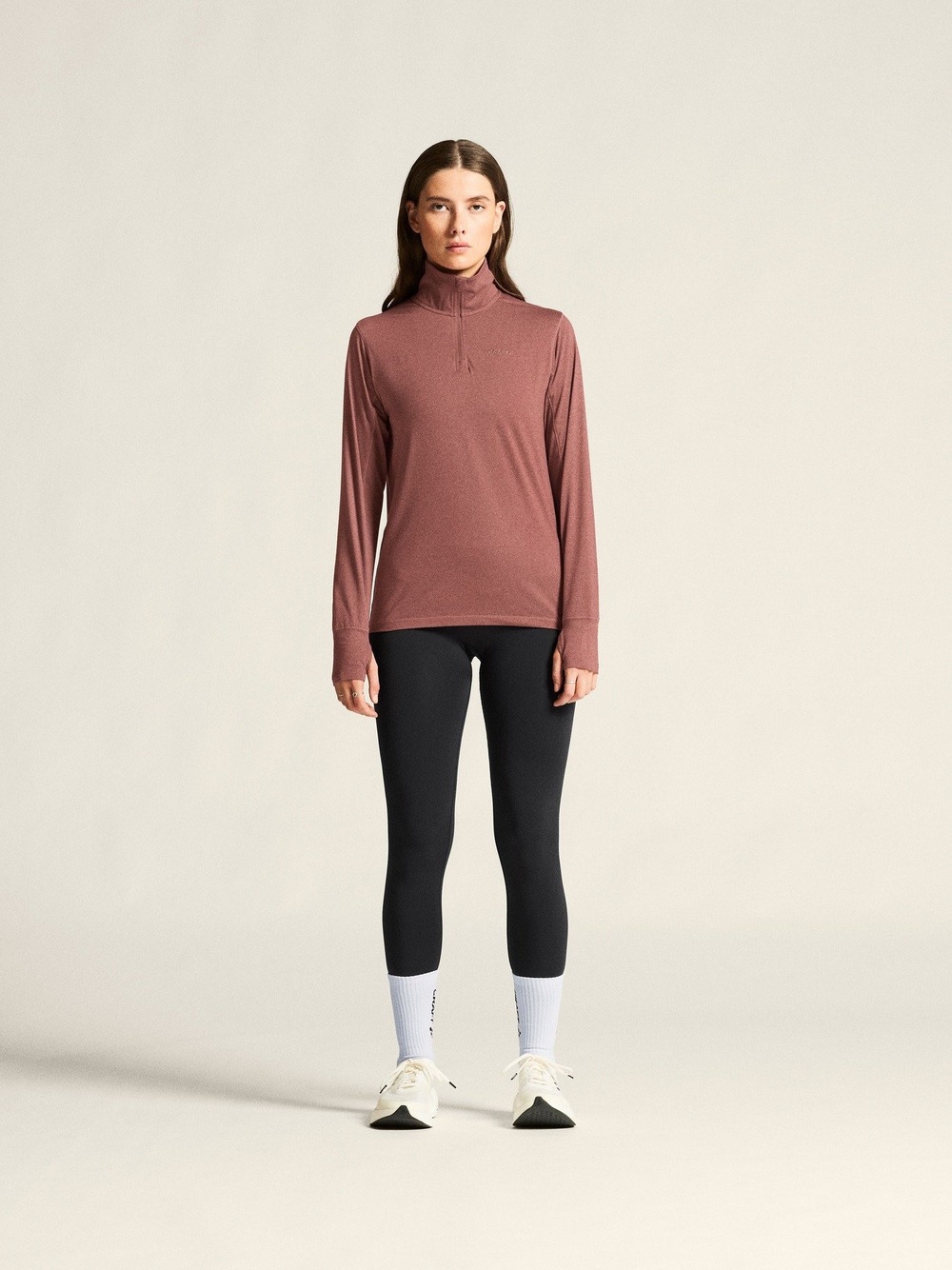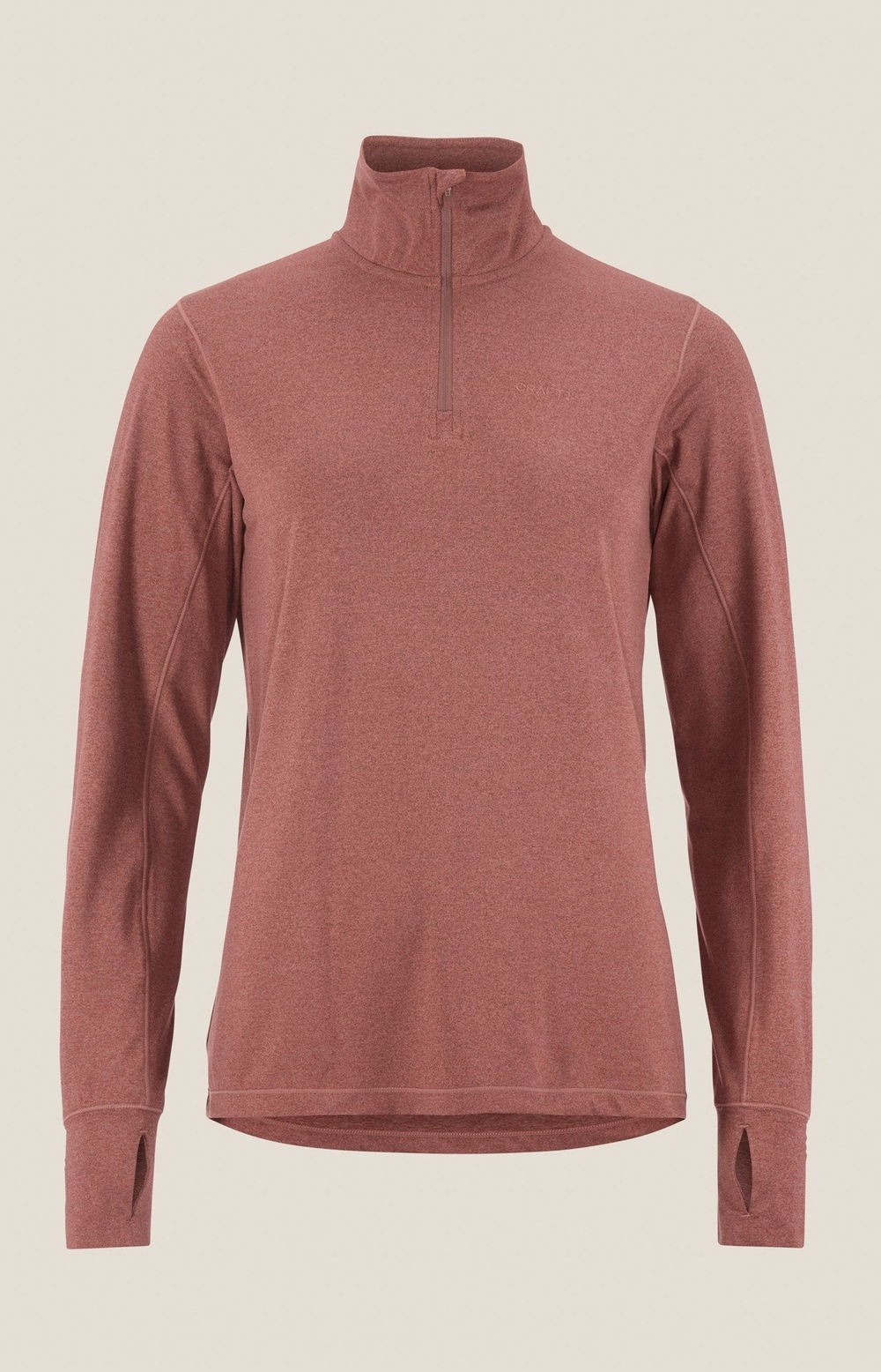 Denne multifunksjonelle jerseyen med halv glidelås er laget av en funksjonell blanding av resirkulert polyester og elastan, med en subtilt ferskenutseende overflate som gir en myk følelse. Den langermede trøyen har også en litt mer avslappet passform enn tradisjonelle, tettsittende basislag, noe som gir bedre allsidighet og tilpasningsevne. Bruk den alene eller under en jakke eller mellomlagstrøye for ekstra isolasjon under kaldere forhold.