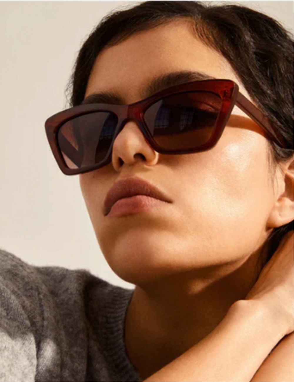Elegante cat eye-sunnies i moderne, brune nyanser