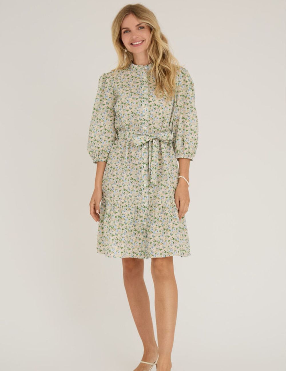 Kjole i flott blomsterprint fra a-view. Den har en løs passform, med knyting i midjen og en lekker kappedetalj nederst. Den har knepping hele veien...Kjole i flott blomsterprint fra a-view. Den har en løs passform, med knyting i midjen og en lekker kappedetalj nederst. Den har knepping hele veien i front, og er normal i størrelsen.