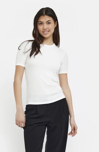 Kortermet topp fra Soft Rebels. Laget i et mykt modalstoff i ribbestruktur og laget med en o-hals. Den perfekte hverdagstoppen - par den med jeans...Kortermet topp fra Soft Rebels. Laget i et mykt modalstoff i ribbestruktur og laget med en o-hals. Den perfekte hverdagstoppen - par den med jeans og sneakers for en casual look eller under en blazer. Full lengde er 61 cm i størrelse S.