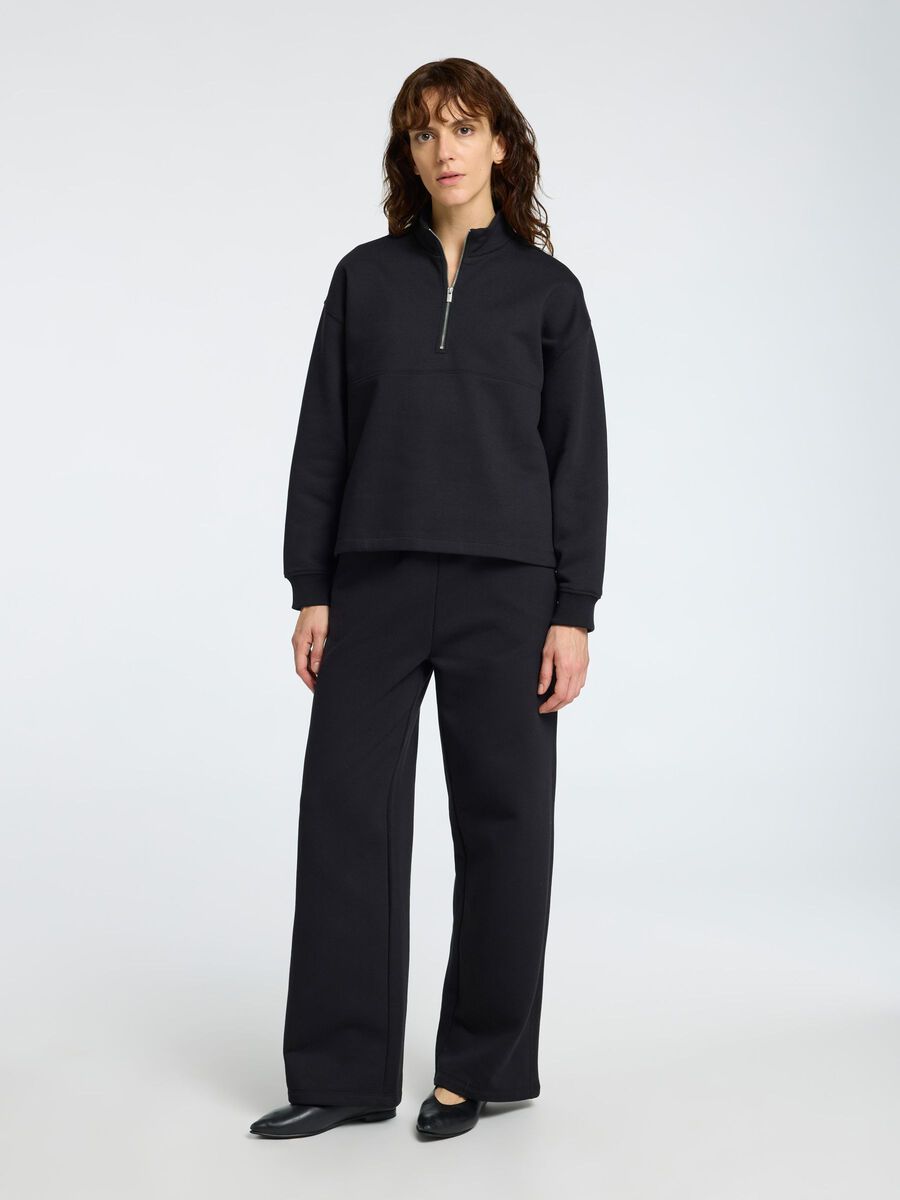 Deilig, myk joggebukse fra selected femme! buksen har vide ben og sitter høyt på livet, myk og god å ha på. Perfekt å style sammen...Deilig, myk joggebukse fra selected femme! buksen har vide ben og sitter høyt på livet, myk og god å ha på. Perfekt å style sammen med Gia LS zipper sweat.