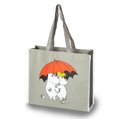 Miljøvennlig shoppingbag med Mummi-motiv. Bytt ut plastposen med disse flotte handlenettene. Praktisk både til handling og oppbevaring.