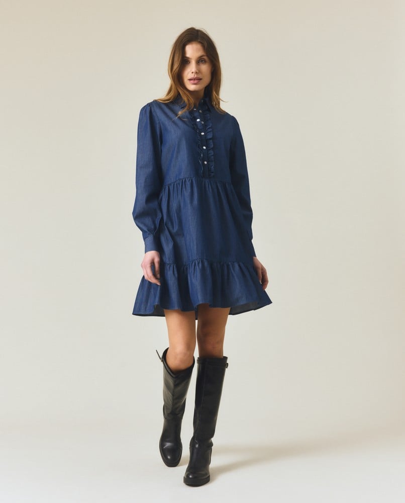 Denim tunikakjole m/rysjer