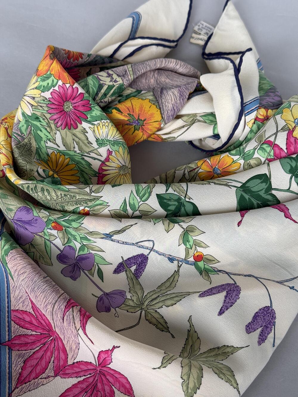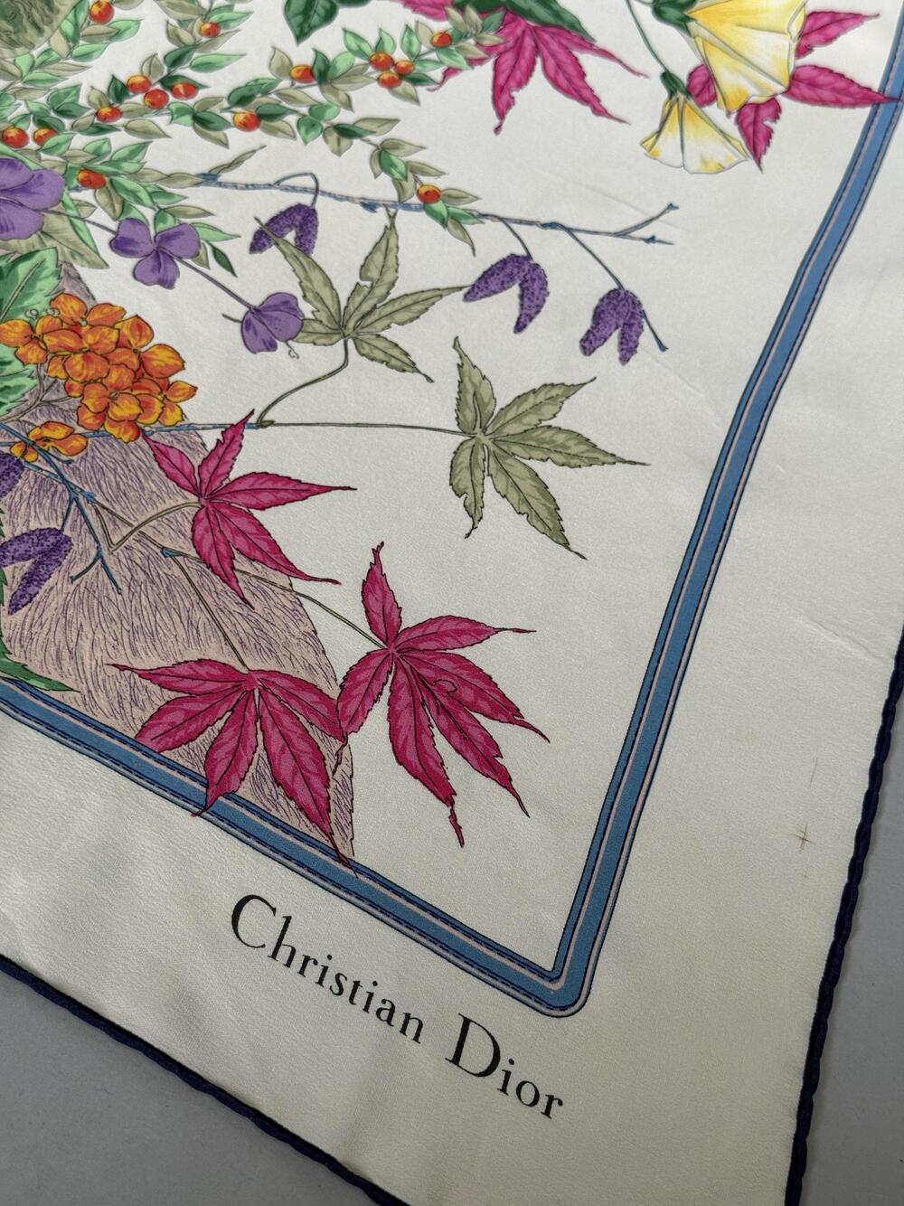 Nyrenset og steamet! Lekkert Christian Dior Silkeskjerf i 100% silke i nydelige farger. Det har håndrullet kanter.
