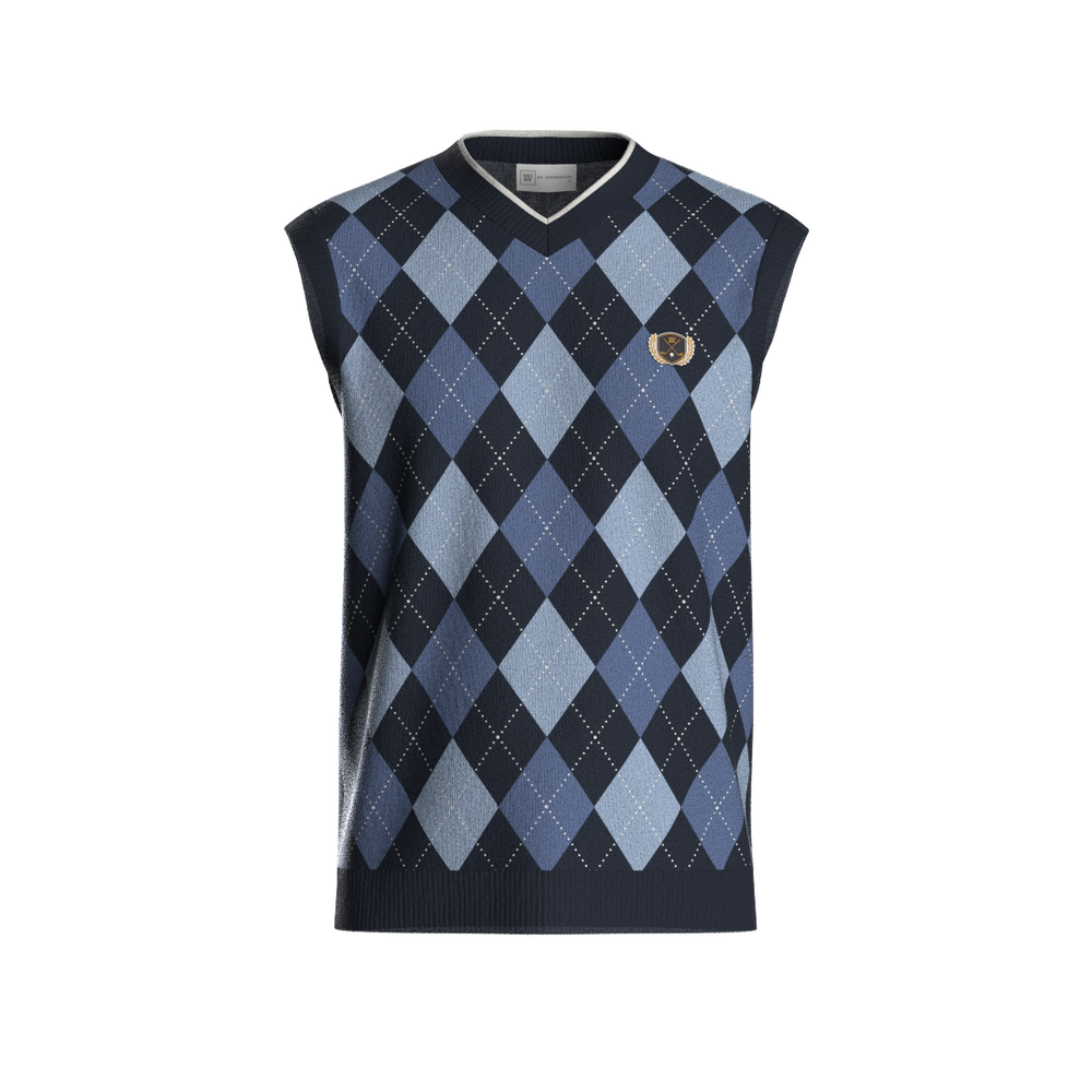 Klassisk argyle-mønster i fullt jacquard-strikk (kun foran)