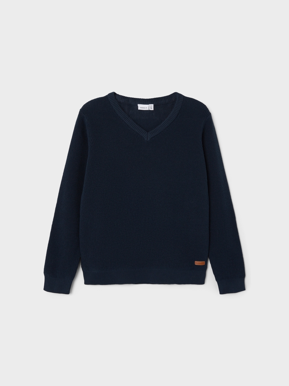 Name It strikket genser med v-hals. Fin til pent og hverdags. Kombiner med en av våre skjorter.