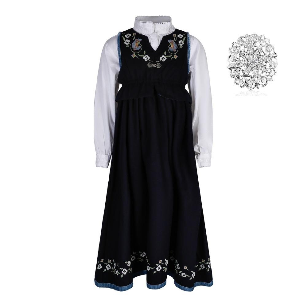 Festdrakt fra Name It i nydelig marine ullstoff og blomster broderi. Pene detaljer og bånd. En variant med blå blomster og en med røde blomster....Festdrakt fra Name It i nydelig marine ullstoff og blomster broderi. Pene detaljer og bånd. En variant med blå blomster og en med røde blomster. Drakten er litt stor i størrelsen. Levers med skjorte og spenner.