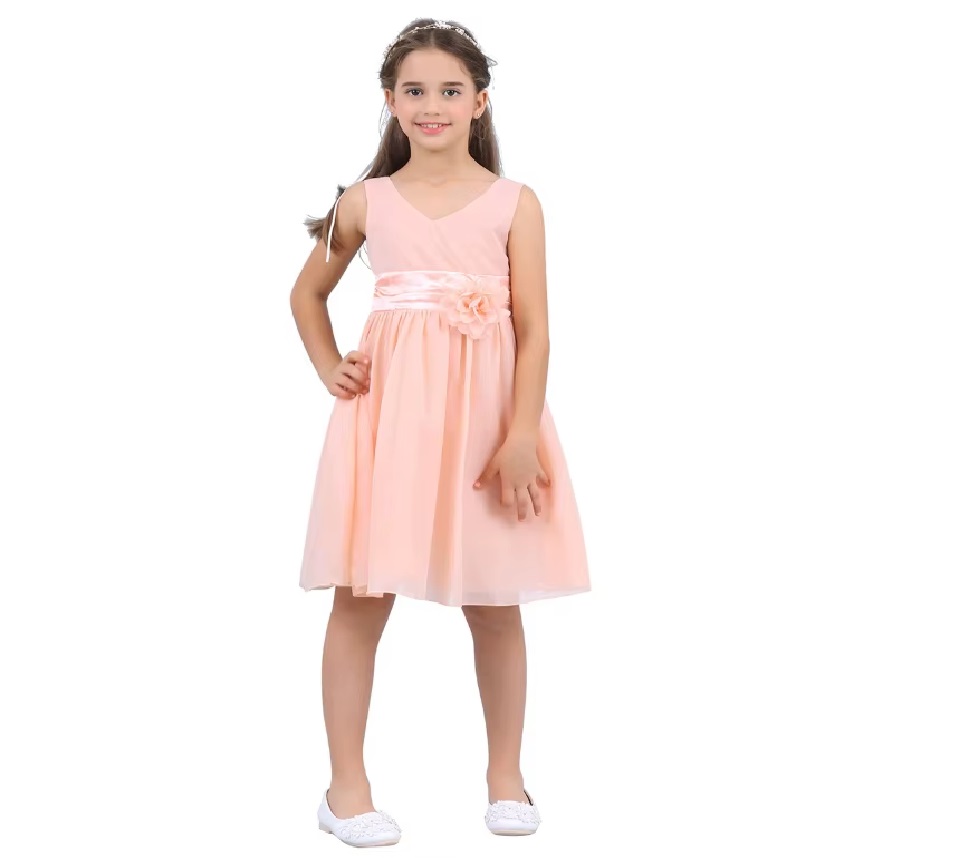 Vakker kjole til jente. Medium lengde. Blomst og belte i midje. Lett skjørt med vidde. Passer til anledninger som ball, bryllup, konfirmasjon, dåp eller når... Les mer