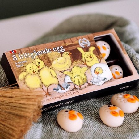 På den sagnomsuste Fryda gård i hjertet av Telemark, skjuler det seg åtte frittgående...Skjønne små frittgående egg, håndlaget i herlig marsipan - en perfekt munnfull.