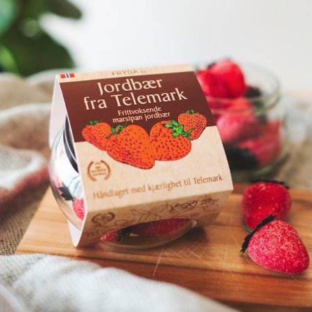 Interiør / Kjøkken / Frydas frittvoksende marsipanjordbær i glass 150g