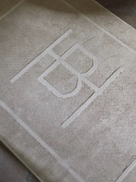 Lekker badematte i bomull i Halvor Bakkes vakre fargepalett. Antiskli knotter på baksiden sørger for at baderomsmatten ligger stødig på badegulvet.