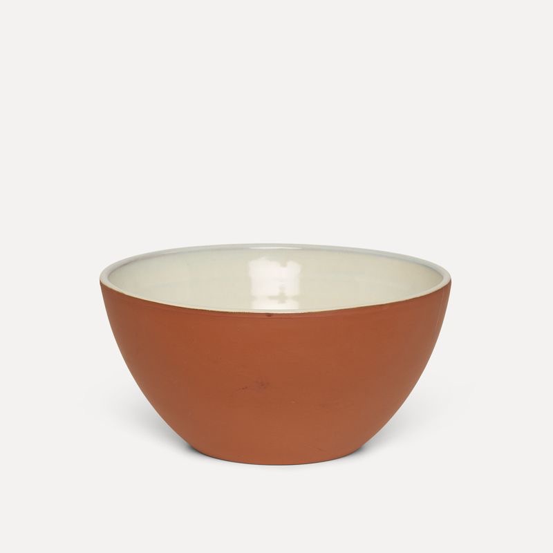 En solid og ærlig bolle i terrakotta, inspirert av bestemors tidløse bakebolle. Glasert på innsiden, ubehandlet på utsiden – helt plastfri og laget for å vare.
