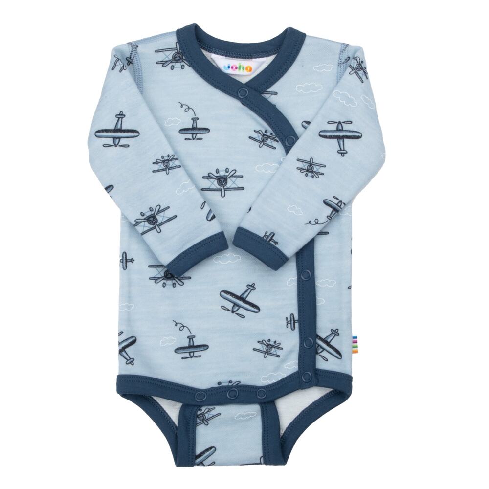 Omslagbody med ytterside av 100% merinoull, bambus inn mot babyen hud.