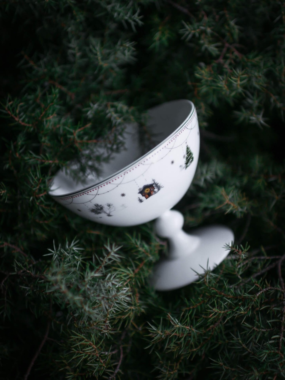 Julemorgen Story dessertskål med stett er liten og elegant med sine feminine kurver. Den er perfekt til å servere en liten dessert, nøtter eller noe...Julemorgen Story dessertskål med stett er liten og elegant med sine feminine kurver. Den er perfekt til å servere en liten dessert, nøtter eller noe godt til kaffen. Når den ikke brukes til servering kan den brukes som en liten lyslykt, smykkeskrin eller bare stå fremme som et dekorativt element.