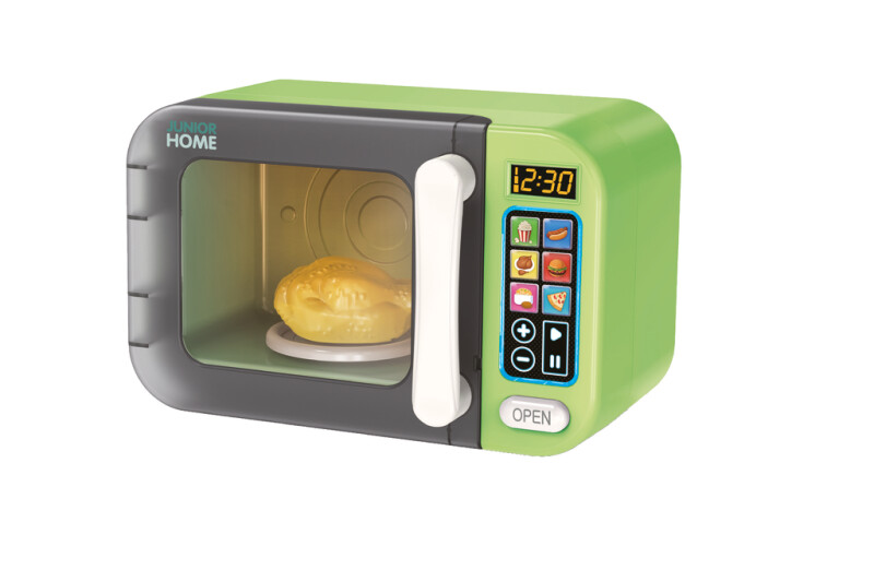 Mikrobølgeovnen har innvendig belysning og fast dreibar dreieskive, utvendig lys og lyder med funksjonsknapper. Velg maten som skal tilberedes, start ovnen og når den digitale...Mikrobølgeovnen har innvendig belysning og fast dreibar dreieskive, utvendig lys og lyder med funksjonsknapper. Velg maten som skal tilberedes, start ovnen og når den digitale timeren teller ned til null er maten ferdig og har endret farge. Ovnen lager en realistisk lyd når den lager mat og en dingslyd når lekematen er ferdig. Lekemikrobølgen kommer med plastmat og inkluderer 3 x AA-batterier. Fra 3 år.Les mer
