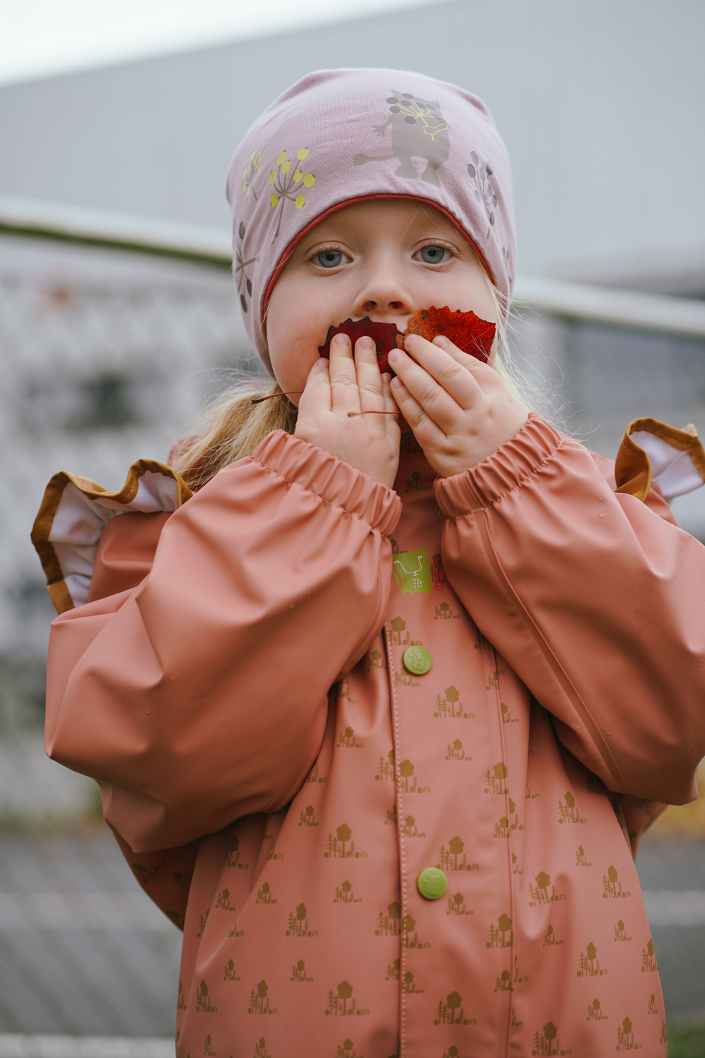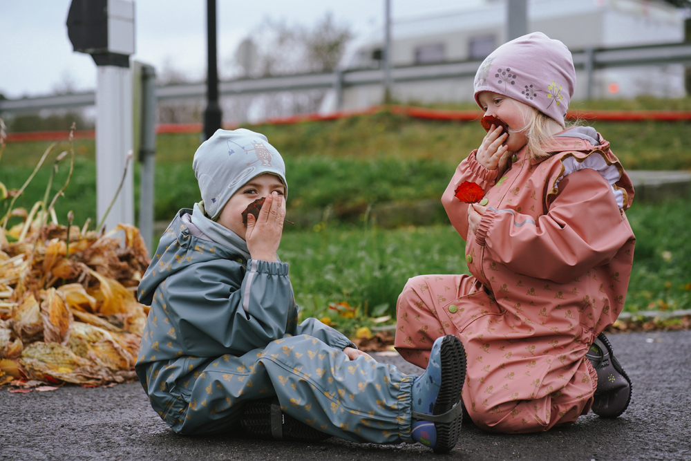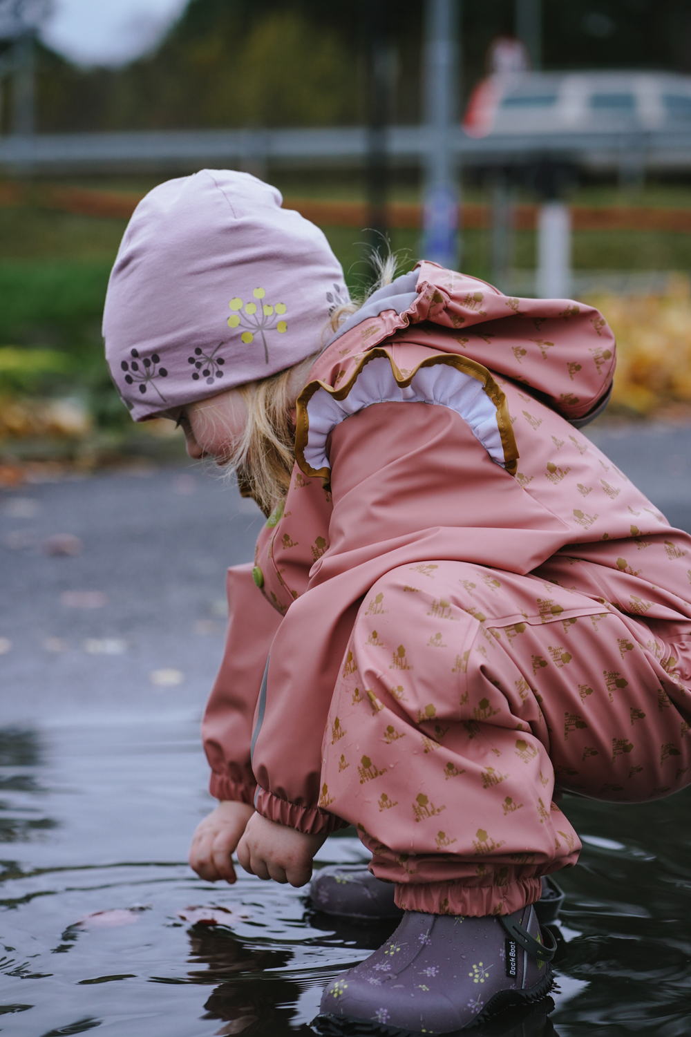Regndressen er stor i størrelsen. Det er ikkje behageleg for bornet å bruke for store klede. Då mistar dei sin bevegelsesfrihet når dei er ute og leikar, og plagget blir slitt feil.