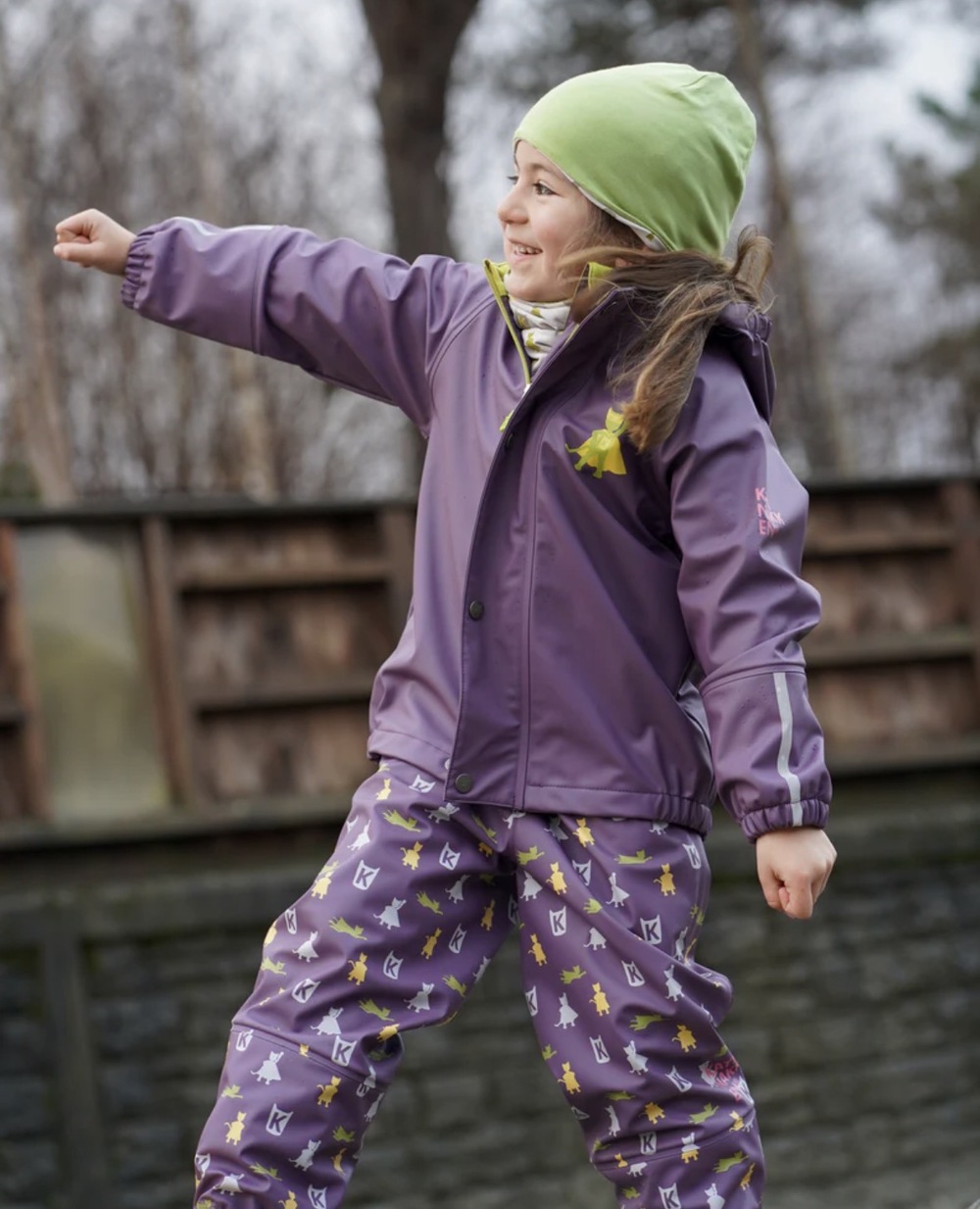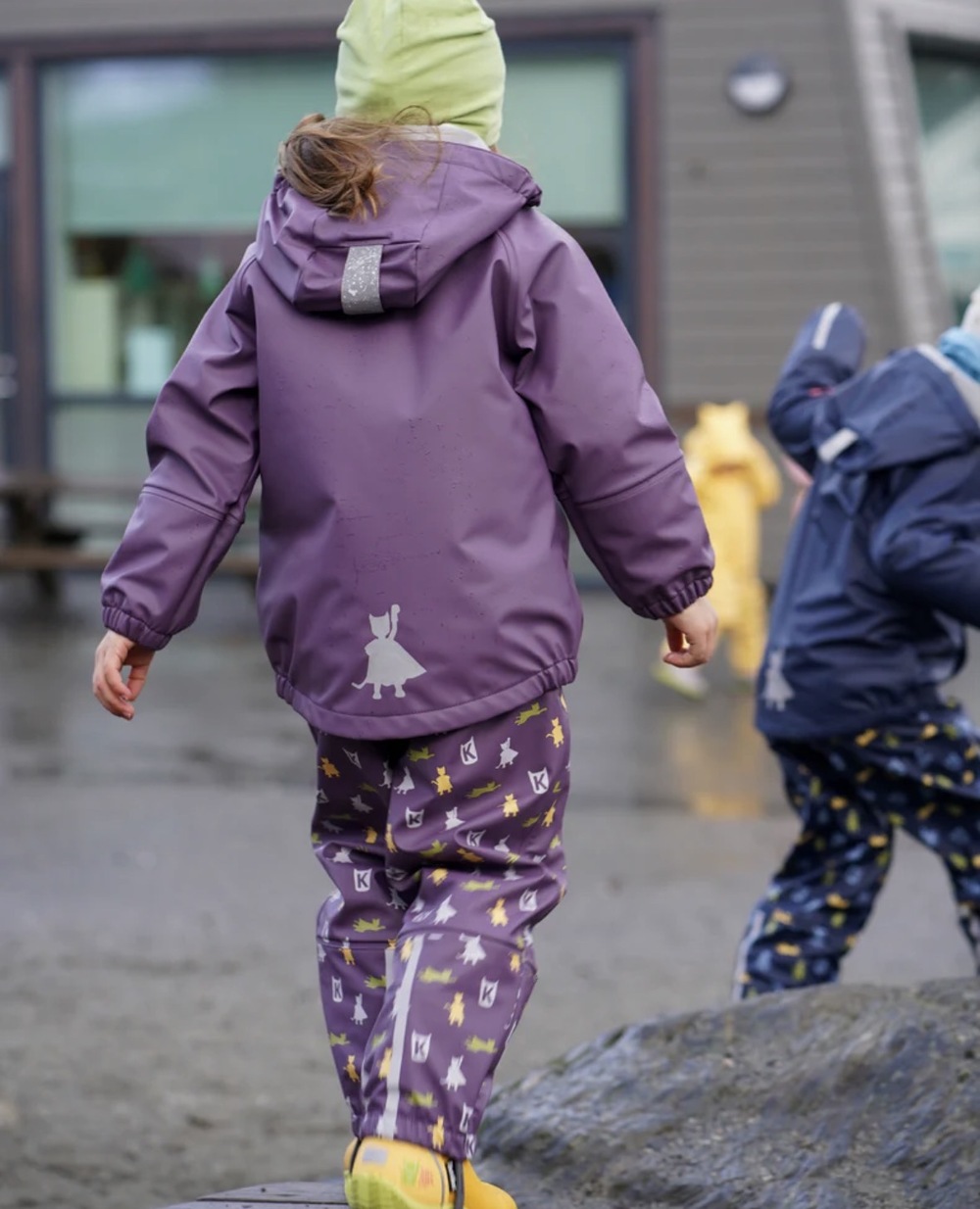Eit todelt regnsett gir stor fleksibilitet i kvardagen. På mildare dagar kan barnet bruke jakka aleine, eller kombinere ho med andre plagg. Er det varmt, men vått i graset, er det perfekt å berre bruke buksa – klar for leik og plasking utan å bli våt. Buksa har justerbare selar som gjer det enkelt å tilpasse passforma etter barnet, og som også kan forlenge levetida på plagget etter kvart som barnet veks.