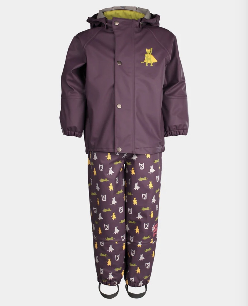 Regnsett Plask kjem i fleire stilige fargar og mønster frå Superkatten-universet. Ønskjer barnet seg kappe? Då kan du enkelt kjøpe laus superheltkappe og feste ho under hetta – klar for nye superheltoppdrag ?