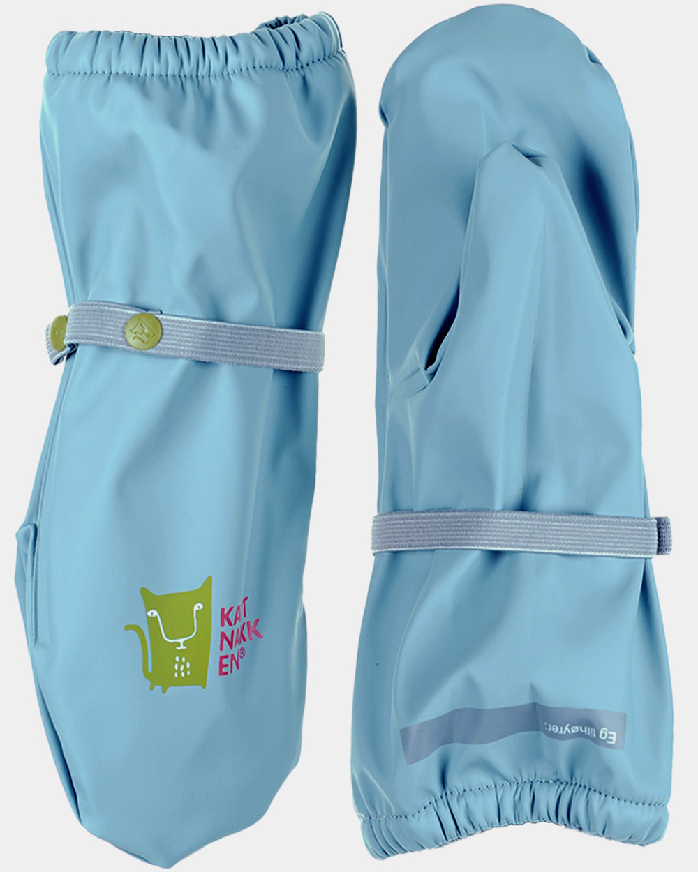 Å leike i vatn er det kjekkaste som er, men fingrane kan fort bli veldig kalde når tempraturen er lav. Difor anbefalar me å bruke...Å leike i vatn er det kjekkaste som er, men fingrane kan fort bli veldig kalde når tempraturen er lav. Difor anbefalar me å bruke regnvottar. Kattnakken sine regnvottar er i mjuk PU med fleecefôr, slik at ein held seg varm. Det er og namnefelt på vottane våre. Dei er lette å ta på og ein kan regulere strikken rundt slik at dei sitt godt på.