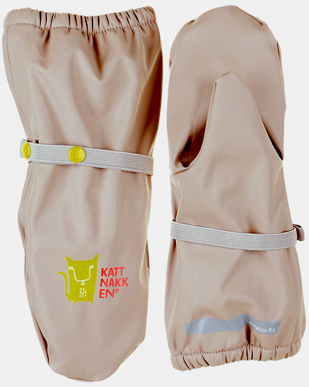 Å leike i vatn er det kjekkaste som er, men fingrane kan fort bli veldig kalde når tempraturen er lav. Difor anbefalar me å bruke...Å leike i vatn er det kjekkaste som er, men fingrane kan fort bli veldig kalde når tempraturen er lav. Difor anbefalar me å bruke regnvottar. Kattnakken sine regnvottar er i mjuk PU med fleecefôr, slik at ein held seg varm. Det er og namnefelt på vottane våre. Dei er lette å ta på og ein kan regulere strikken rundt slik at dei sitt godt på.