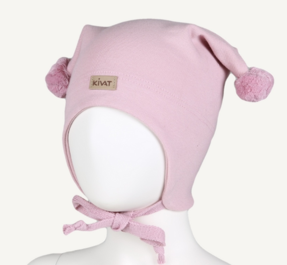 Vår og høstlue til barn med dusker på sidene og knyting under haken. Kivatluen er vindtett ved ørene og har en god passform.