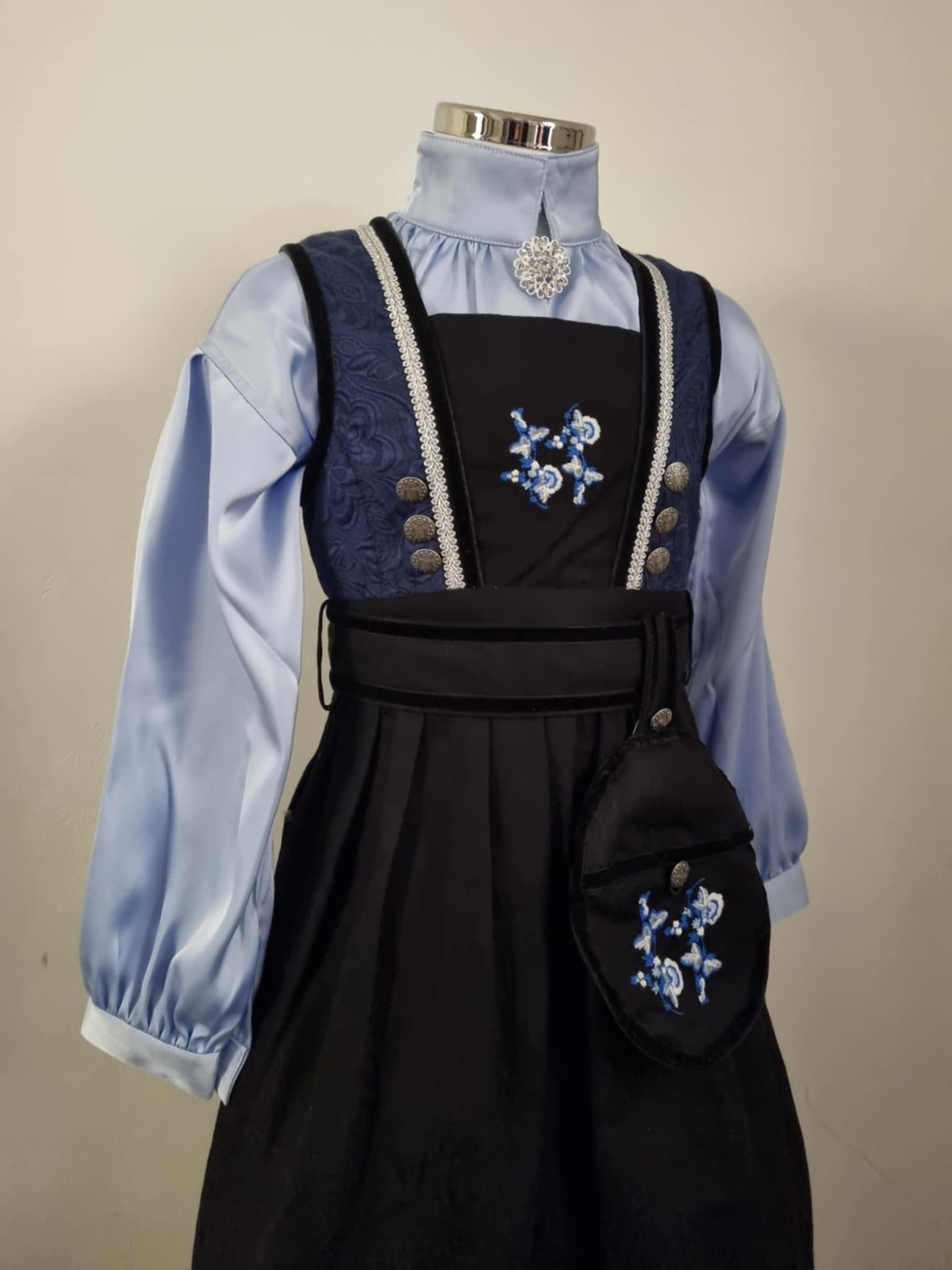 Kristin festdrakt med silkeskjorte, veske, brosje