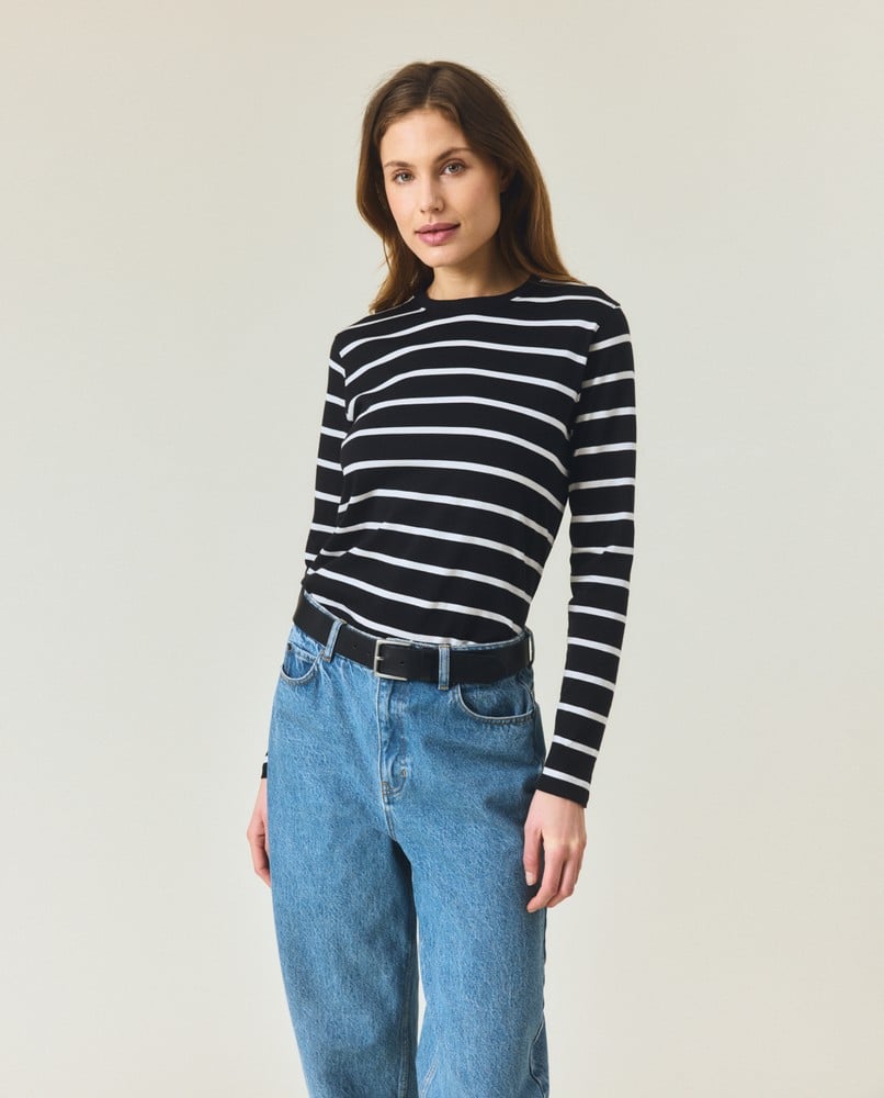 Langermet bommuls-t-skjorte,svart/hvite striper