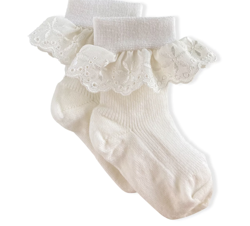 Nyhet! Søte sokker i merinoull med blondekant. Sokkene kan maskinvaskes på 40° C ullvask. 80% merinoull, 17% polyamid, 3% elastan.