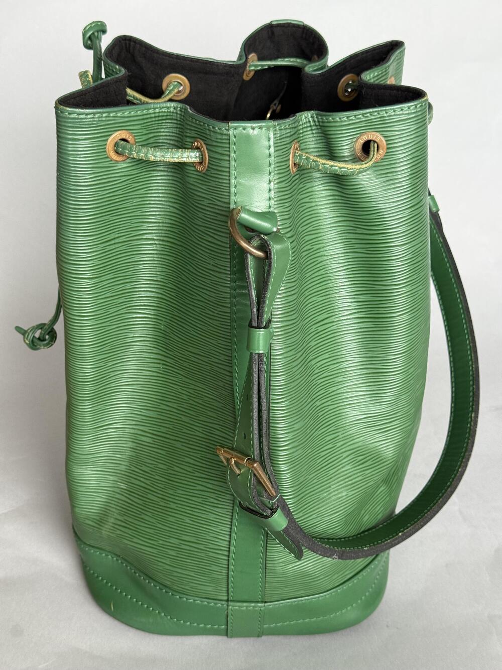 Louis Vuitton Noé GM (den største) fra 1993, i grønn med hardware i gullfarget messing. Den har en stor lomme som lukkes med drawstring og...Louis Vuitton Noé GM (den største) fra 1993, i grønn med hardware i gullfarget messing. Den har en stor lomme som lukkes med drawstring og har regulerbar skulderreim.