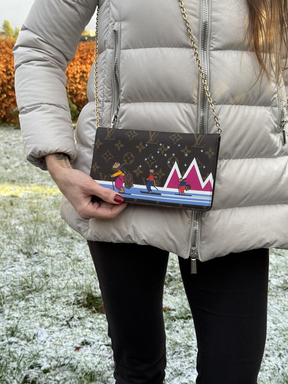 Louis Vuitton Pochette Weekend fra 2018 i monogram mønster med ski bjørner. Det er en LIMITED EDTION veske fra julekolleksjonen i 2018. Den har 3...Louis Vuitton Pochette Weekend fra 2018 i monogram mønster med ski bjørner. Det er en LIMITED EDTION veske fra julekolleksjonen i 2018. Den har 3 glidelås lommer med gullfarget hardware og rosa inni lommene. Lenken kan taes av ved behov og den kan brukes som veske, clutch eller lommebok. Et unikt samleobjekt!!