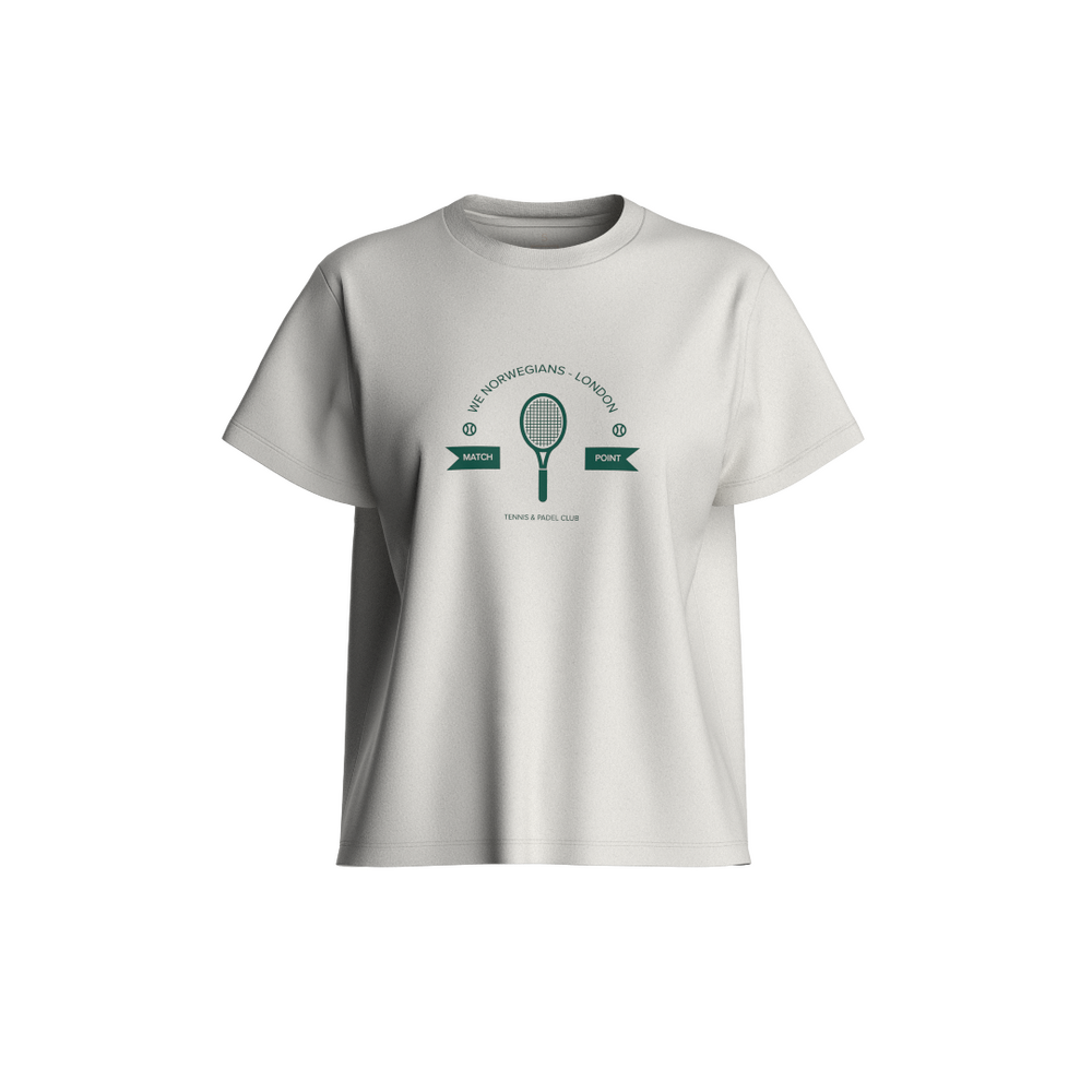 En tidløs favoritt med en leken, nostalgisk vri. Denne klassiske t-skjorten for kvinner er laget av myk, pustende bomull for daglig komfort og enkelhet. Hver...En tidløs favoritt med en leken, nostalgisk vri. Denne klassiske t-skjorten for kvinner er laget av myk, pustende bomull for daglig komfort og enkelhet. Hver fargevariant har et unikt kunstverk, inspirert av vintage tennisplakater – og tilfører en dristig, retro energi til en ren, enkel silhuett.