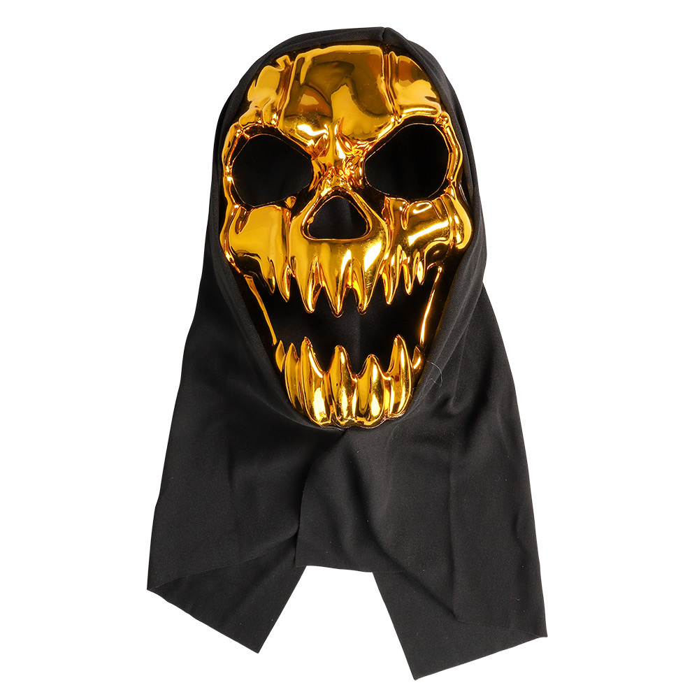 Skap et unikt og skremmende uttrykk med denne masken av et gyllent monster. Den metalliske finishen gir et dramatisk og mystisk preg, perfekt for halloween,...Skap et unikt og skremmende uttrykk med denne masken av et gyllent monster. Den metalliske finishen gir et dramatisk og mystisk preg, perfekt for halloween, maskerade eller temafester. Masken dekker ansiktet og gir en kraftfull visuell effekt, enten du går for et skrekktema eller en mer fantasifull karakter.
