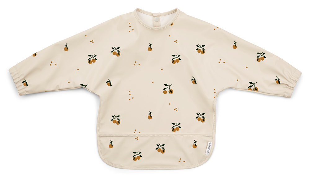 Perfekt til å beskytte klærne mot søl under måltidet. Smekken er vannavvisende, heldekkende og har en oppsamlingslomme i front. Lukkes...Nydelig smekke med armer fra Liewood!