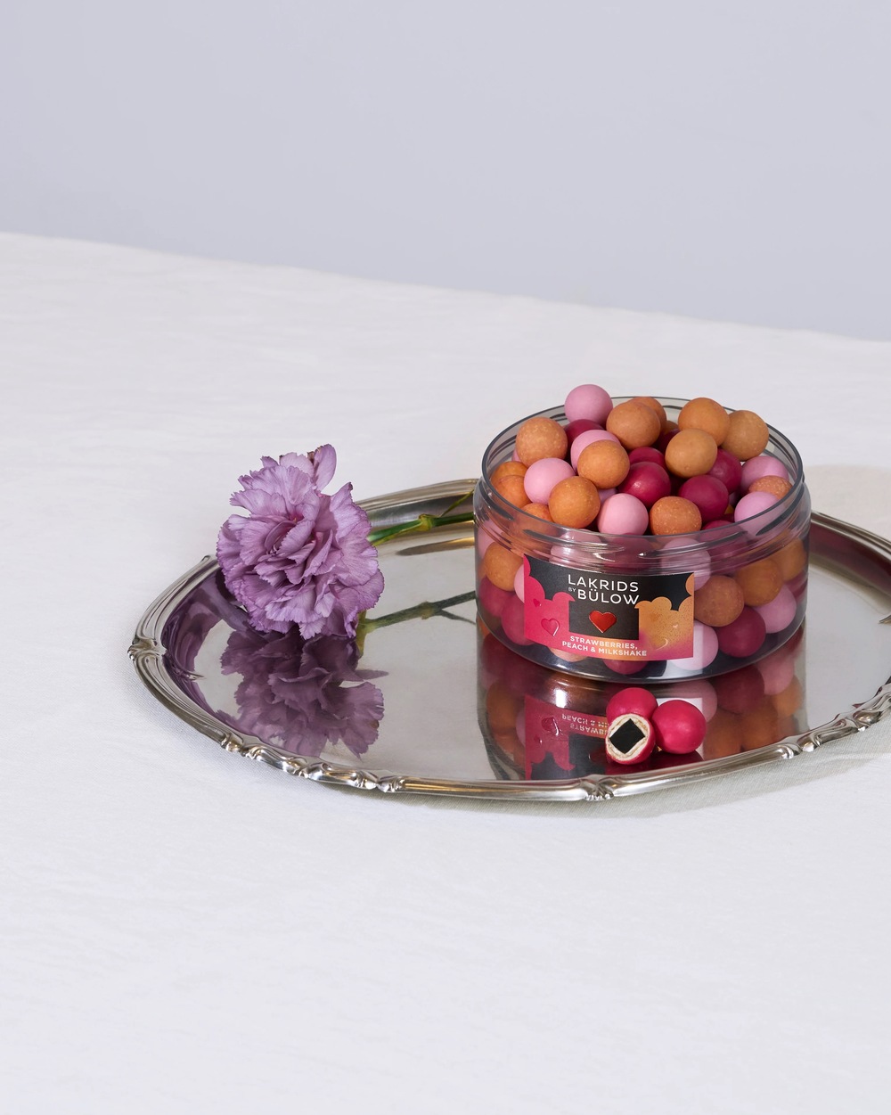 MIXED LOVE er fylt med et utvalg av utsøkt gourmetlakris godbiter som du vil forelske deg i gang på gang. Nyt de fruktige, saftige og...MIXED LOVE er fylt med et utvalg av utsøkt gourmetlakris godbiter som du vil forelske deg i gang på gang. Nyt de fruktige, saftige og syrlige smakene av PEACHES, MILKSHAKE og STRAWBERRIES & CREAM, hver og en nøye laget for å fortrylle smaksløkene dine og gi deg lyst på mer.Les mer