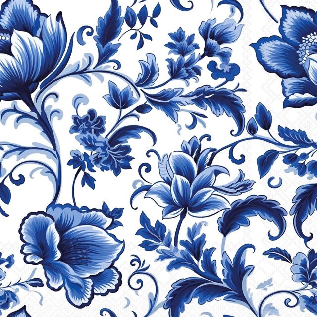 Napkin delft blue florals - lunsj 33x33cm, 20stk