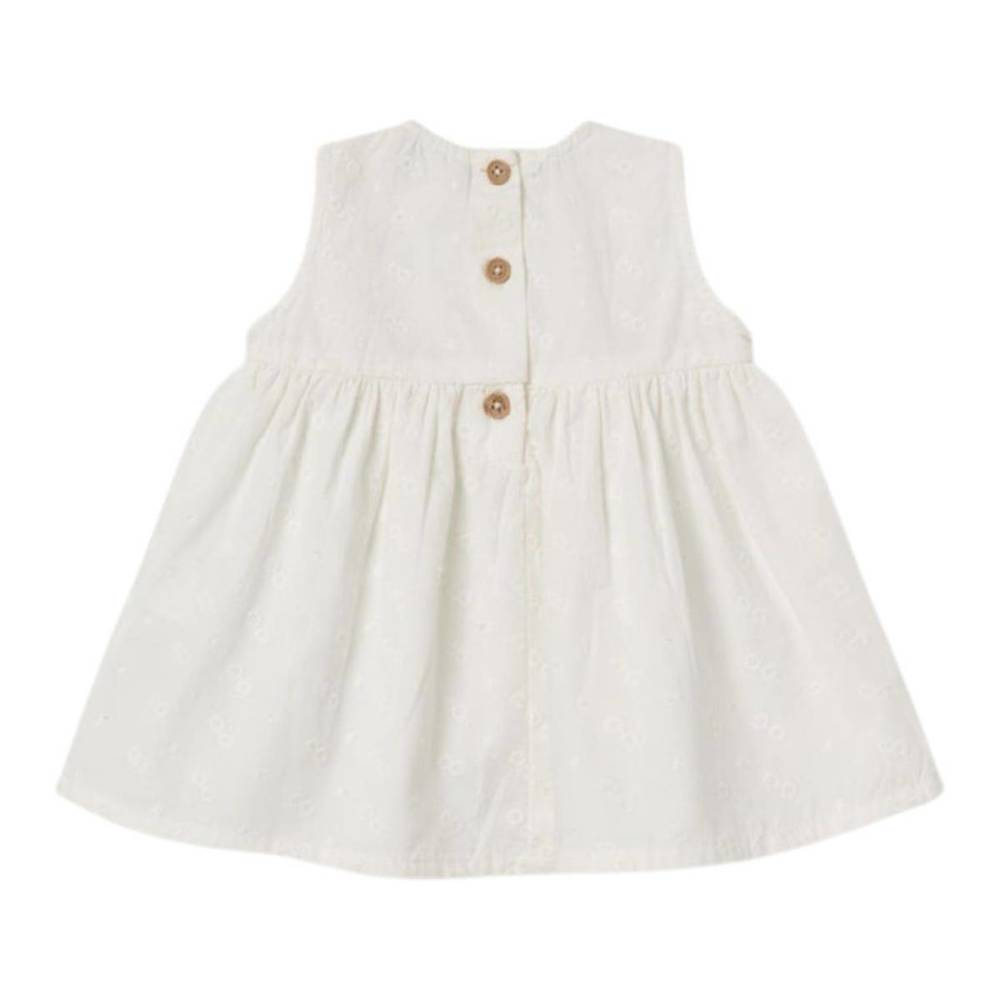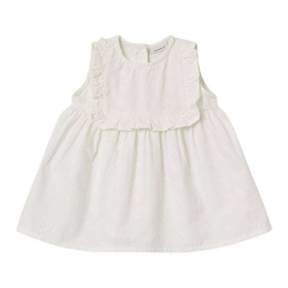 Kjole Baby Delana er en søt hvit ermeløs sommerkjole til de minste fra Name It. Kjolen har fine detaljer i stoffet, og nydelige rysjekanter... Kjole Baby Delana er en søt hvit ermeløs sommerkjole til de minste fra Name It. Kjolen har fine detaljer i stoffet, og nydelige rysjekanter foran. Knappeåpning bak på ryggen. Perfekt med bloomers under.