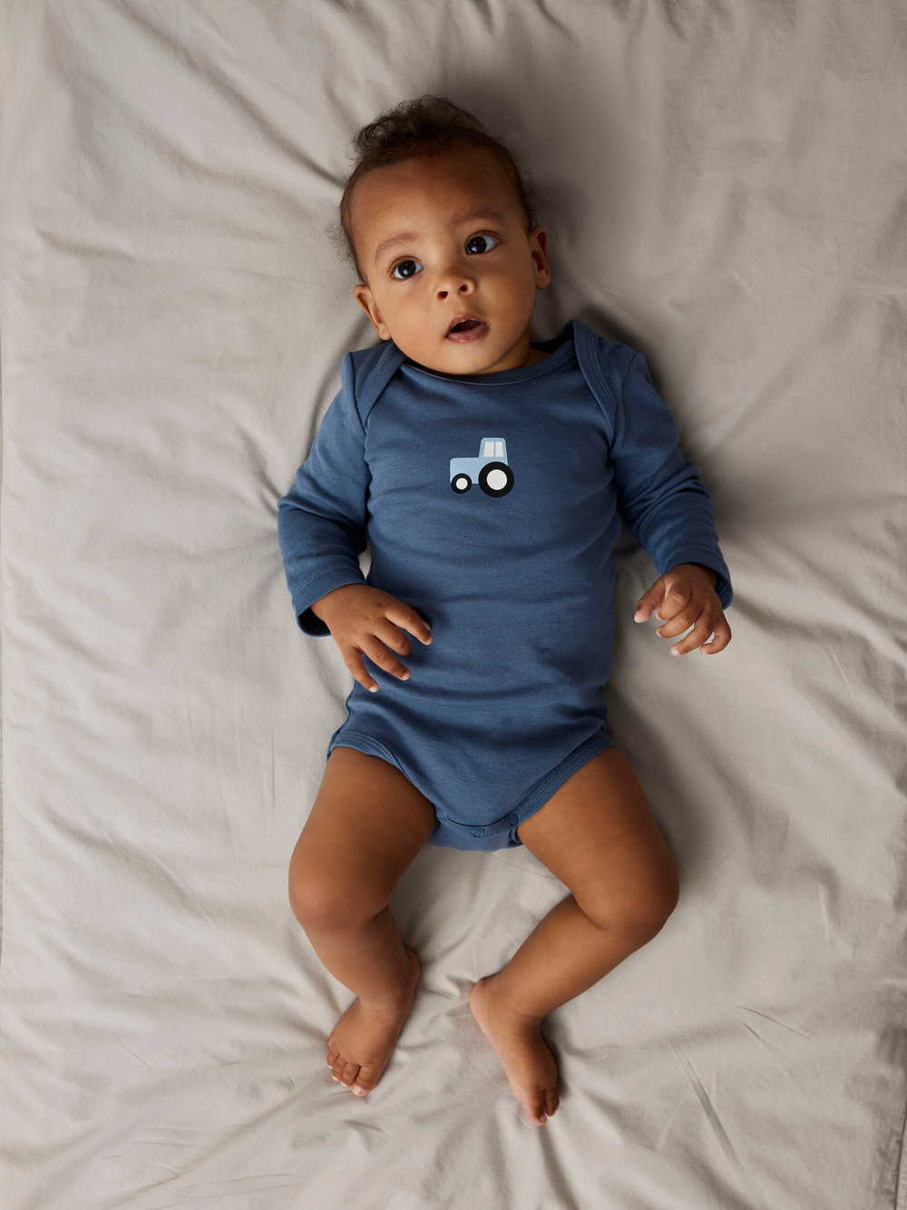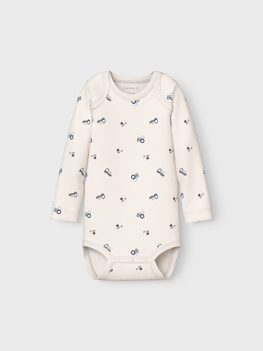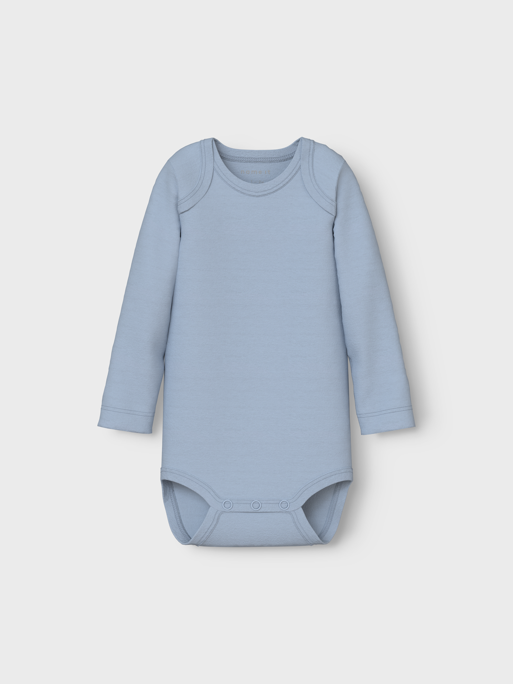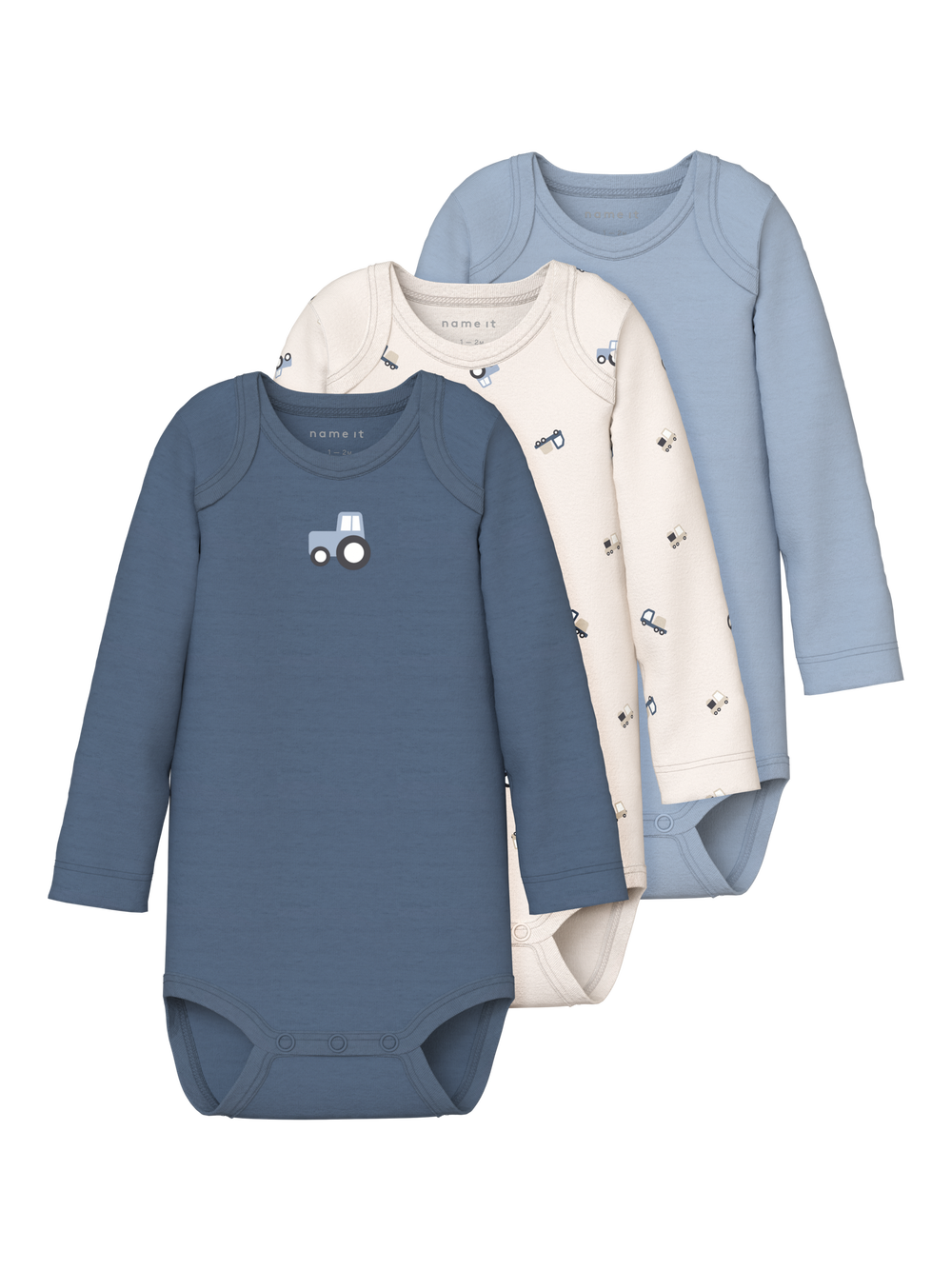 3-pk body med lang arm. Konvoluttåpning ved skulder.