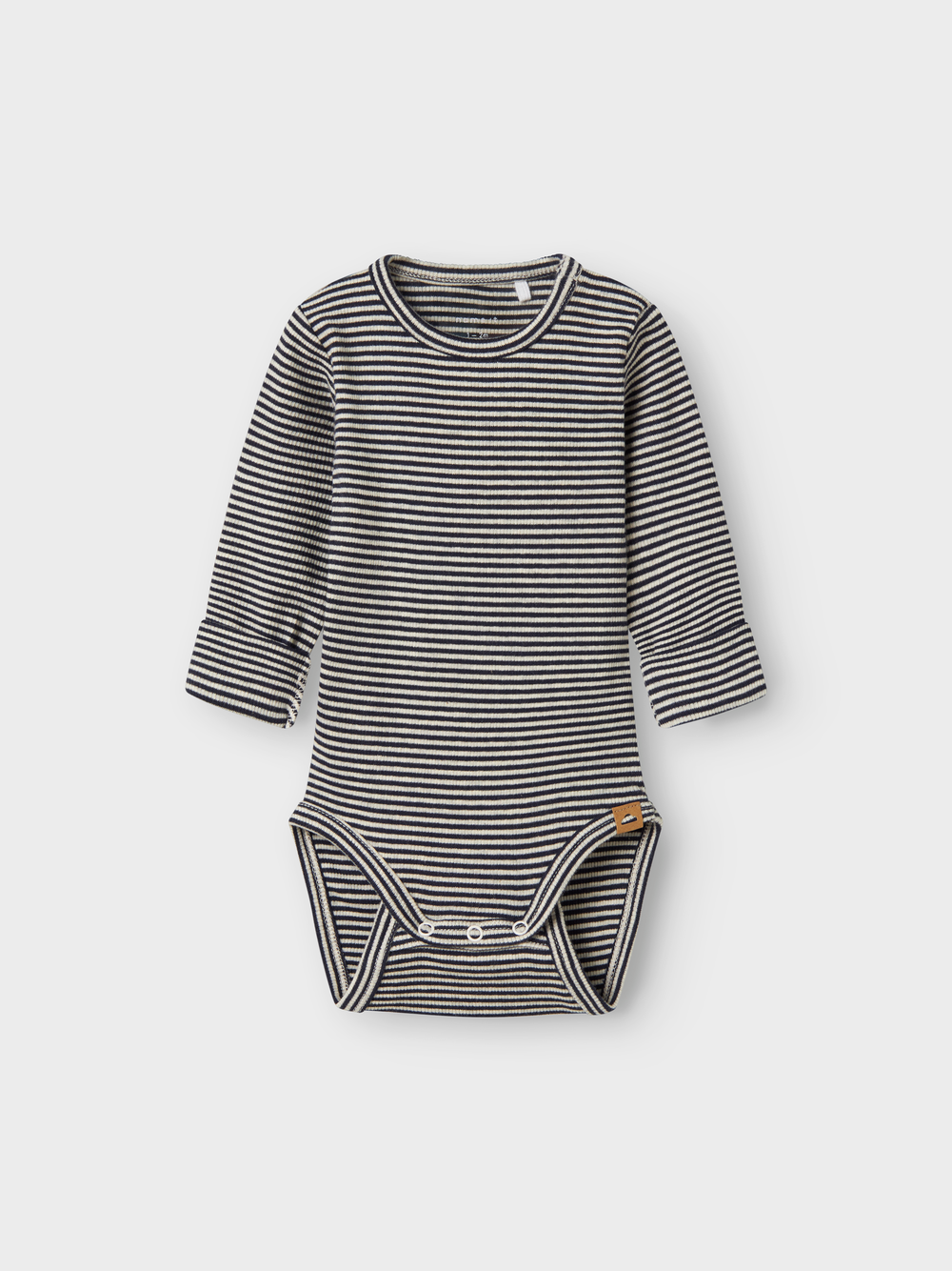 Fin body med striper i ribb-kvalitet. Finnes matchende legging.