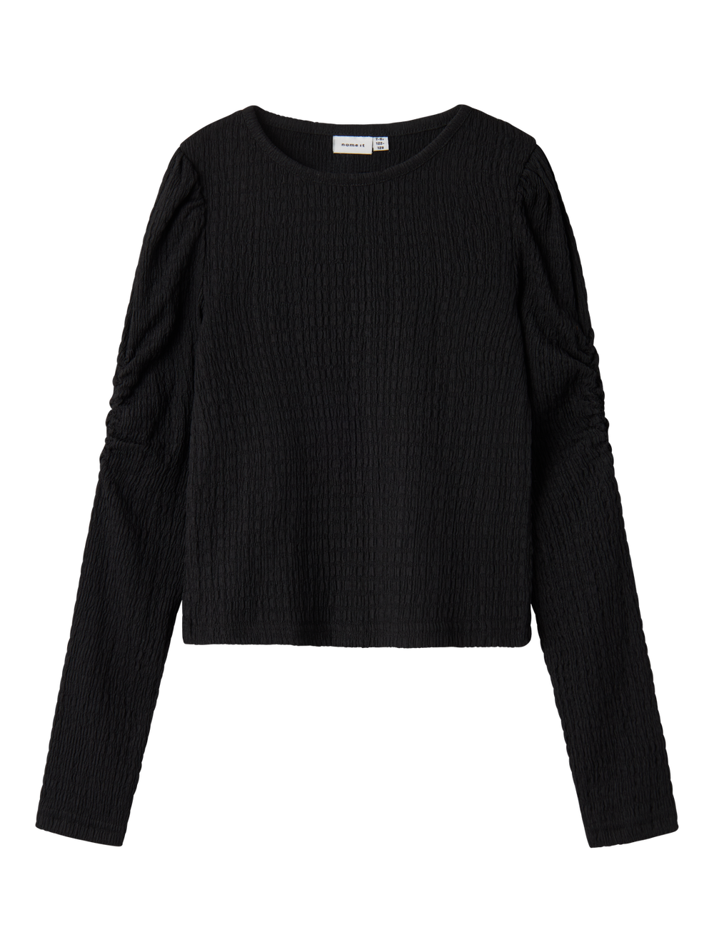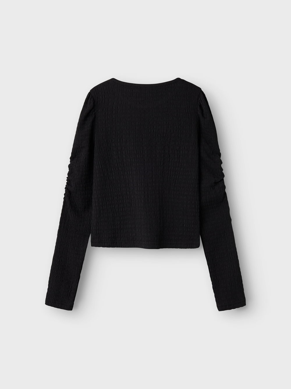 Fin smal topp i "smock" kvalitet. Elastisk over det hele, og struktur som "krepp".