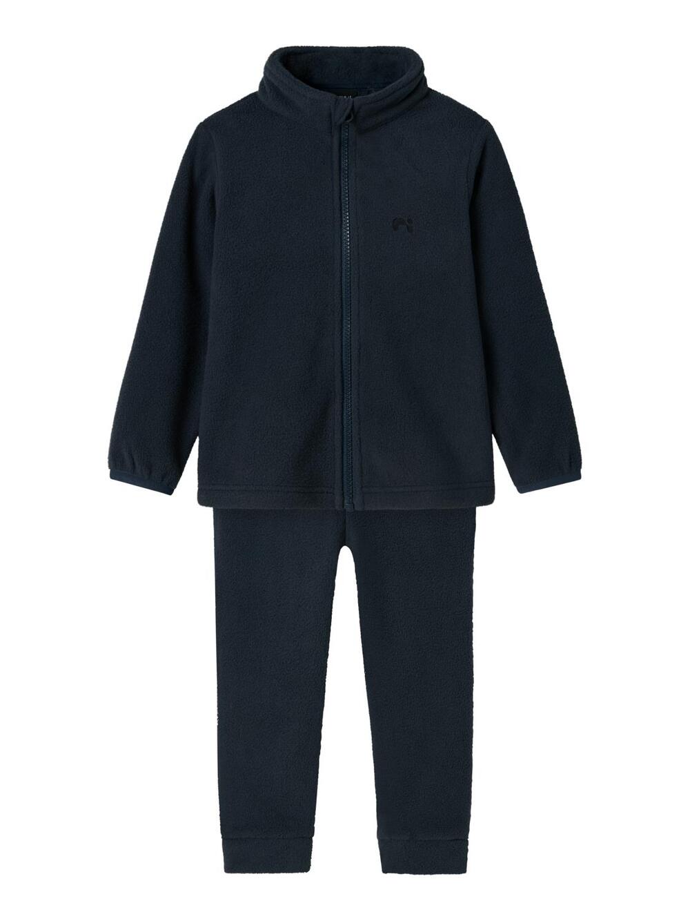 2-delt fleece sett fra Name It i Str 6-12 år. Jakken har høy hals og glidelås i front. Buksen har strikk i livet.