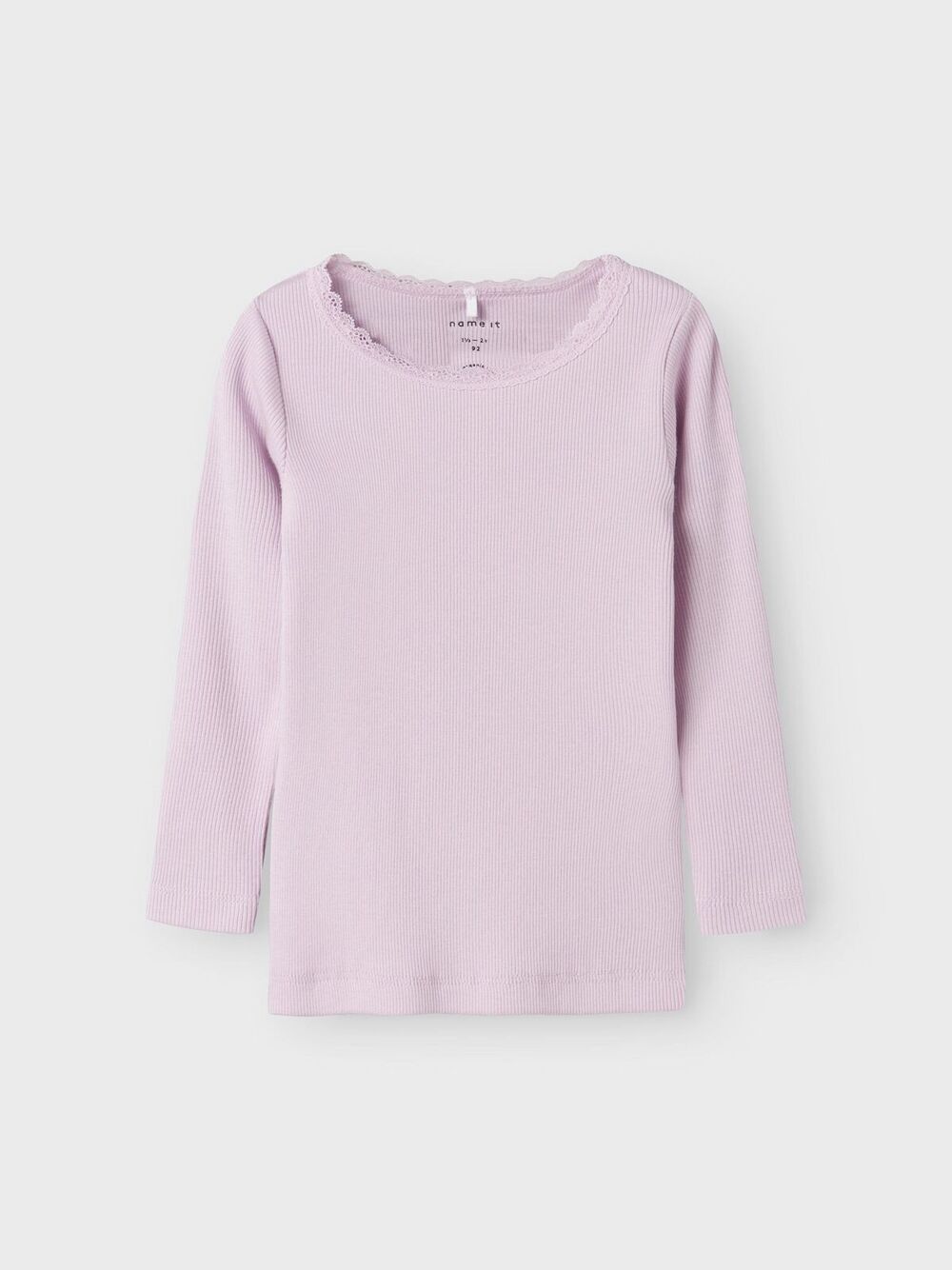 Fin topp med smal ribb. Fin detalj med liten blonde øverst rundt halsen.