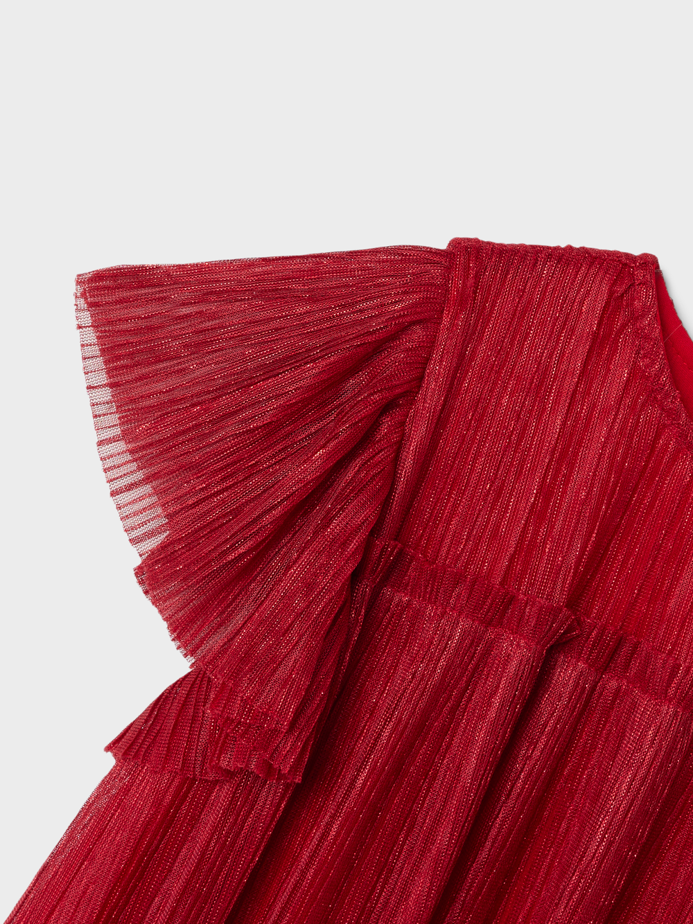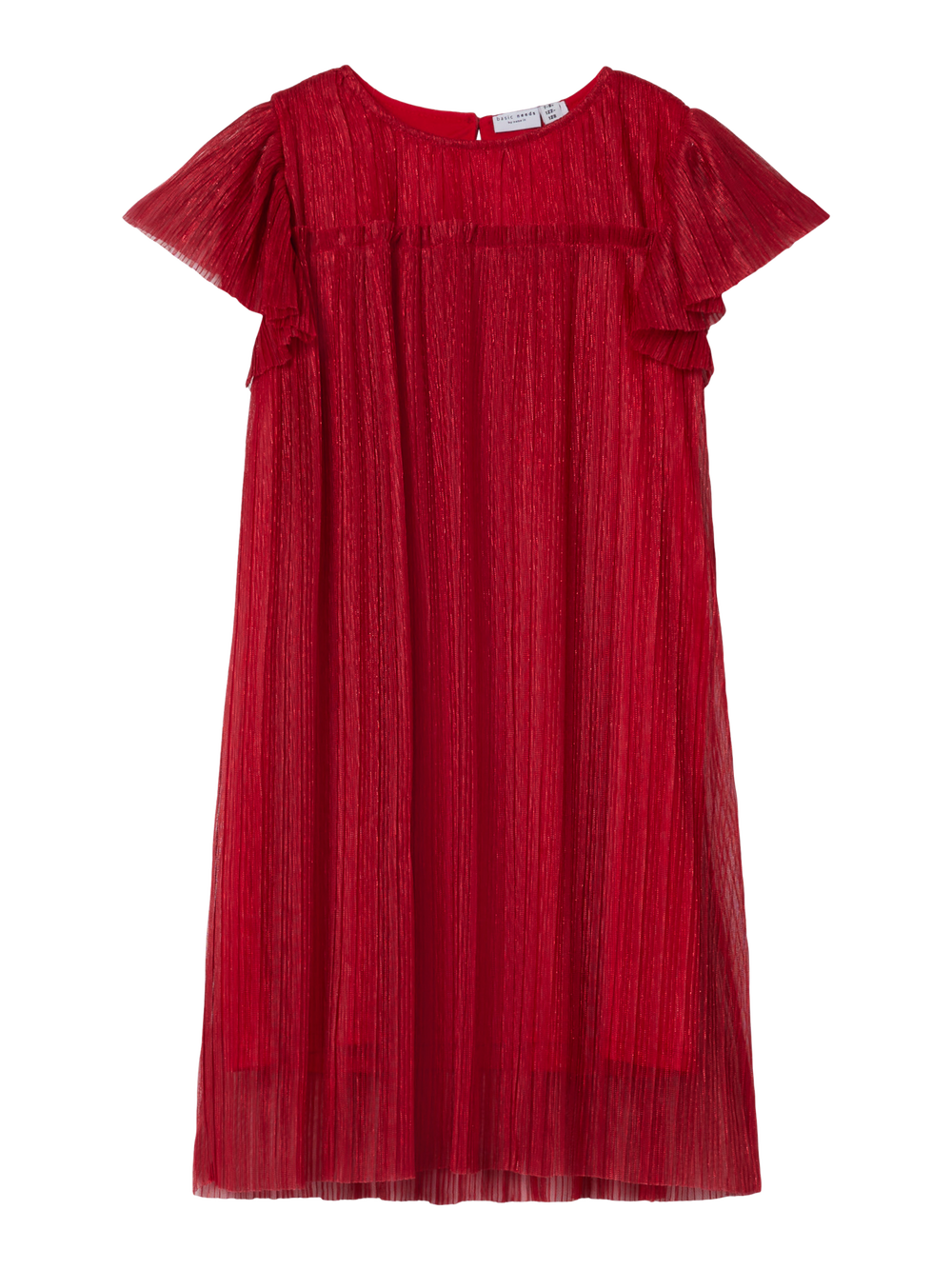 Enkel og fin kjole i nydelig rødfarge. Litt tråder med mer skimmer/glitter innimellom. Knapp øverst i nakken bak. Rysjer ved skuldrene. Kjolen faller fint på....Enkel og fin kjole i nydelig rødfarge. Litt tråder med mer skimmer/glitter innimellom. Knapp øverst i nakken bak. Rysjer ved skuldrene. Kjolen faller fint på.