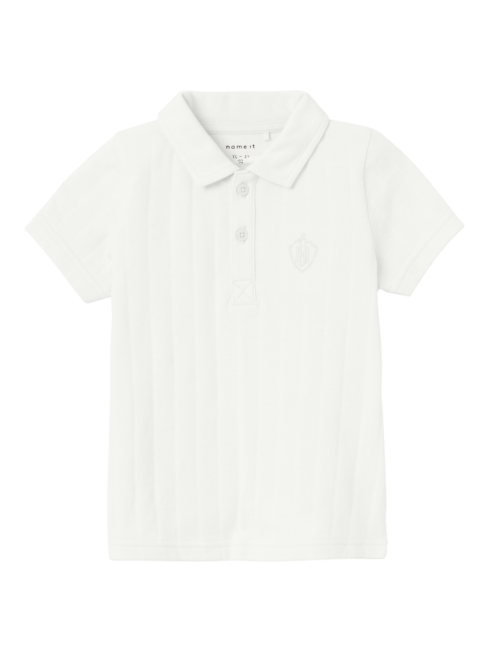 T-skjorte med krage. Svak struktur i stoffet. Ton i ton brodert emblem på brystet.