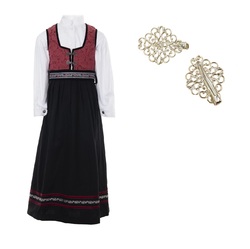 Festdrakt med silke skjorte. Nydelig festdrakt i 80% polyester og 20%. Silkeskjorte i 100% polyester. Vaskes lett på 30 grader. Nydelig brosje følger med! Normal... Les mer