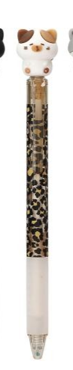 Skriv, slett, overskriv! Ikke noe problem med de slettbare PENfection-gelpennene. Pennene har en supersøt, figurativ kattetopp som fungerer som et viskelær (termofølsomt blått blekk som...Skriv, slett, overskriv! Ikke noe problem med de slettbare PENfection-gelpennene. Pennene har en supersøt, figurativ kattetopp som fungerer som et viskelær (termofølsomt blått blekk som forsvinner når det varmes opp ved friksjon). Ledningene (blytykkelse 0,7 mm) er ikke utskiftbare. Tre design tilgjengelig: hvit og brun kattetopp og leopardpenn, svart kattetopp med svart gjennomsiktig penn og grå kattetopp med blomsterrosa penn.Les mer